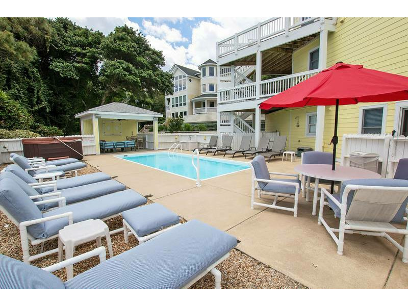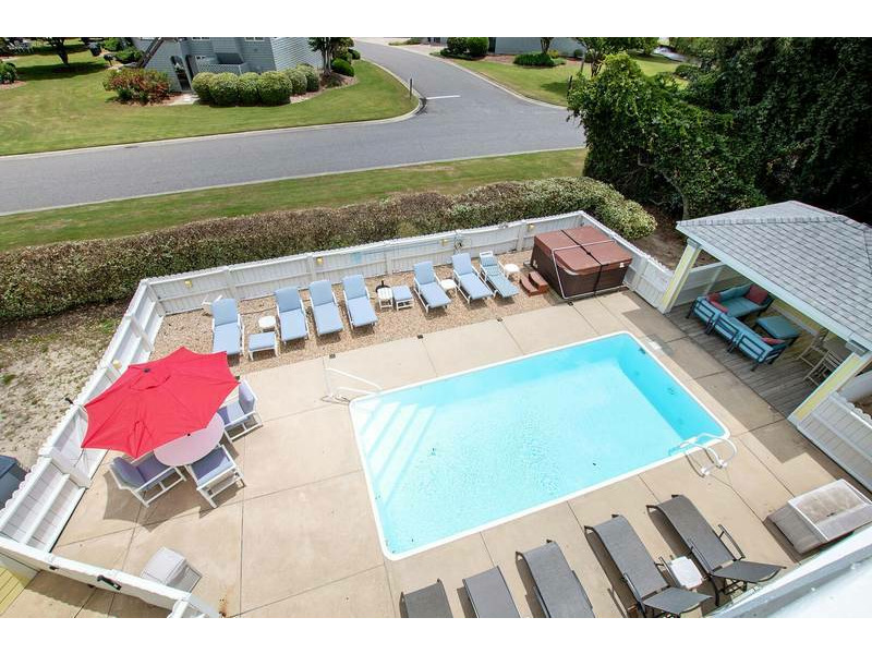 Extras: Private Pool (11 x 24, heated for $500), poolside pavilion with TV/ blue tooth speakers, Hot Tub, 8 TV, DVD, pack-n-play, XBox, 2 CD/stereo, gas grill, charcoal grill, Keurig coffee maker, high chair, videos books, games, scanner, printer, 2 full size refrigerators, wet bar, picnic table, open outside shower, corn hole game, wood burning fireplace, linens and towels provided and Corolla Light Community Amenities for 12. (Corolla Light is a private community that requires guests to wear wristbands to access community amenities). No Smoking. No Pets. Seasonal Flex Stay available from October 1 - May 15. Distance to Beach: 1380'. House Address: 1115 Gray Court. Beds: 2 King, 2 Doubles, 2 Singles, 2 Bunk Sets. Key Type: Keyless entry. CHECK IN LOCATION: 1023 Ocean Trail, Corolla Office.