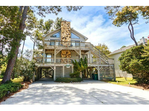 Extras: Hot Tub, 6 TVs, 5 VCRs, DVD player, stereo with CD, screened porch (enclosing hot tub), high speed wireless internet, high chair, pack-n-play, 2 baby gates, baby monitor, side rail for bed, videos, books, games, charcoal grill, fish cleaning station, enclosed outside shower, gas fireplace (Available November 1- April 30), golf discounts at Seascape Golf Links in Kitty Hawk, outdoor furniture including rocking chairs, parking for 4 cars, linens and towels provided, community water and Corolla Light Amenities for 9 (Corolla Light is a private community that requires guests to wear wristbands to access community amenities). No Smoking. No Pets. Seasonal Flex Stay available from October 1 - May 15. House Address: 1040 Miller Court. Beds: 2 Kings, Queen, 3 Singles, Trundle. Key Type: Keyless Entry. CHECK IN LOCATION: 1023 Ocean Trail, Corolla Office.