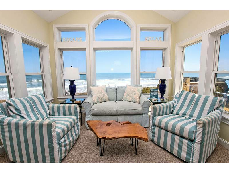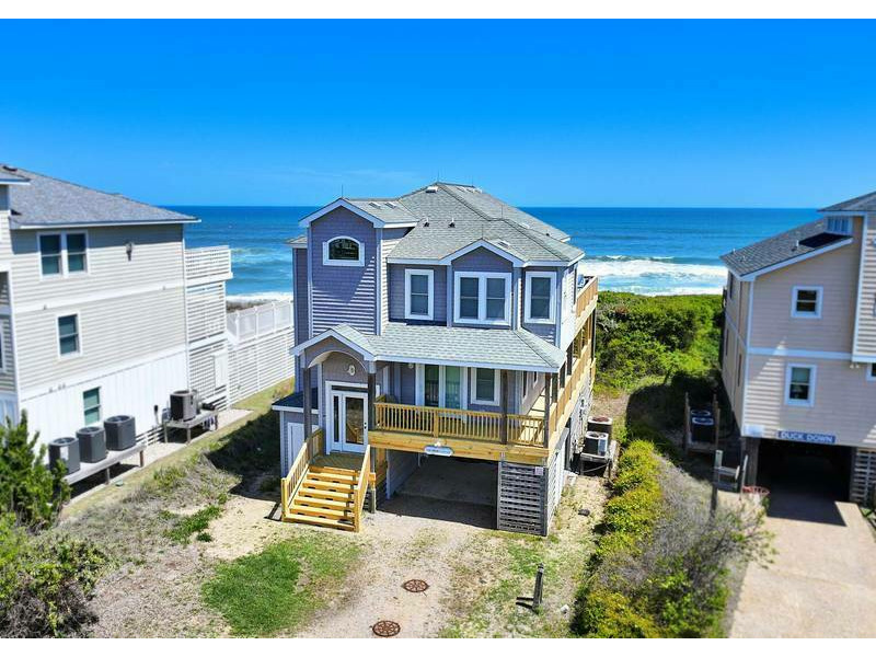 This Oceanfront home will have your family enjoying the "heart of duck" from luxurious accommodations, where every bedroom has its own deck access and flat screen TVs with DVDs! Enjoy the pristine and secluded beaches from the plentiful decking and relax in style.