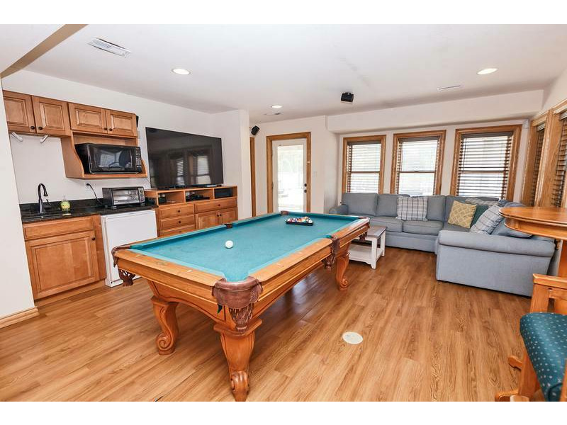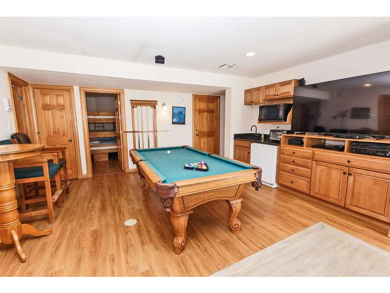 Mid Level: Den with a flat-screen TV/Blu-Ray DVD and deck access. 2 King Master Bedrooms each with flat-screen TV/Blu-Ray DVD and deck access, Queen Bedroom with flat-screen TV/Blu-Ray DVD and a semi-private full bathroom (second door from bathroom to hallway), Master Bedroom with a BunkSet, Single and flat-screen TV/Blu-Ray DVD. Laundry Room with washer, dryer and a utility sink.