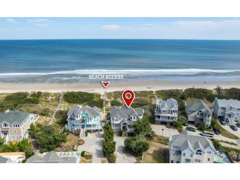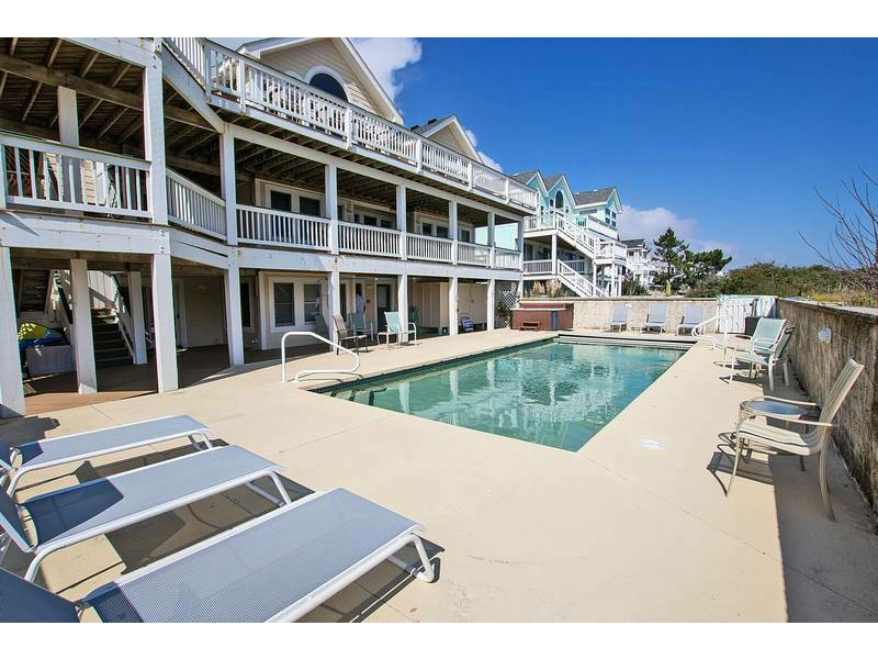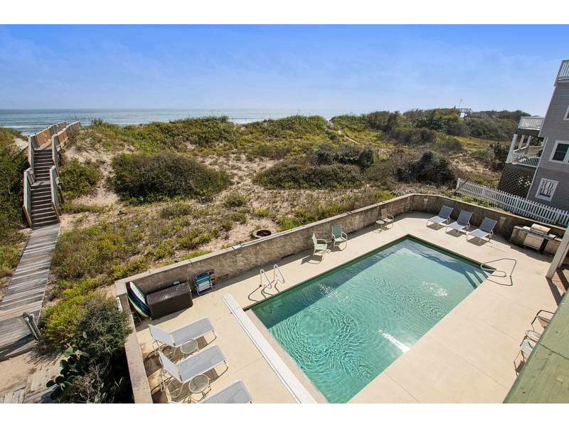 Extras: Private Pool (15 x 36, heated for $500 per week), Sunken Hot Tub, 9 TVs, 9 DVD players, books, games, bikes, pool table, ping-pong table, shared beach walkway with foot wash, hammock, 2 hammock swings, 2 outside showers, gas grill, 2 refrigerators, mini-refrigerator, 2 dishwashers, 2 ovens, ice-maker, wet bar, parking for 6 vehicles, linens and towels provided and Buck Island Community Amenities. No Smoking. No Pets. Full week rentals only. Distance to beach Access: Oceanfront. House Address: 749 Voyager Road. Beds: 3 Kings, Queen, Bunk Set, DuoBunk, 3 Singles. Key Type: Hard Key (must pick up keys from check-in office). CHECK IN LOCATION: 1023 Ocean Trail, Corolla Office.