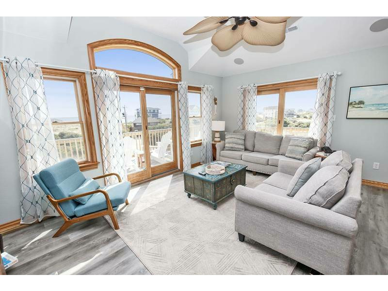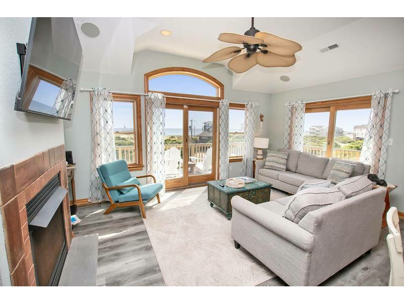 Accessible by 4x4 vehicle only! "Let's Just Sea" is nestled only a stone's throw from the ocean, this GORGEOUS four bedroom home offers breathtaking views of the ocean and the sounds of the surf! Experience the Outer Banks the way people did years ago! No roads, no distractions, no complications - just miles of gorgeous coastline. Relax, unwind and reconnect with your loved ones. Located in Carova beach, renowned for its clean and wide beaches. Keep an eye out for wild horses grazing nearby or dolphins playing in the surf!