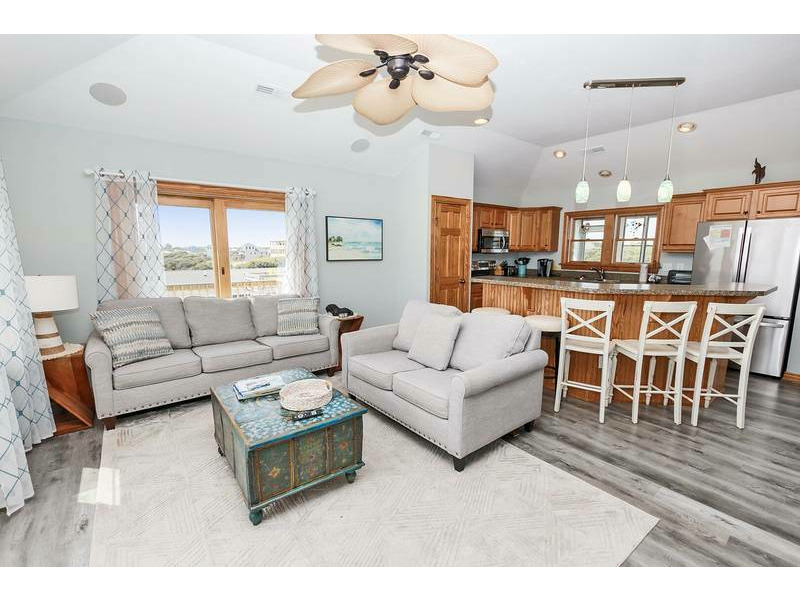 Top level: King Master Bedroom with TV/DVD, private bathroom and deck access with ocean views. Large kitchen with counter seating for 2, dining area seating 8 and the great room with TV and deck access. Ship's Watch with beautiful ocean views.