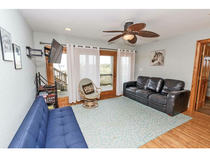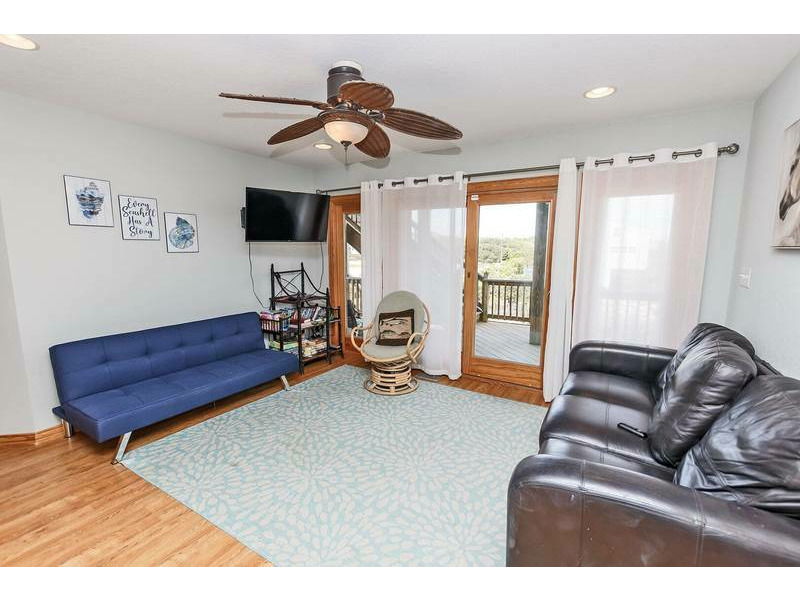 Mid level: King Master Bedroom with TV, private deck with ocean views and private bathroom with tub and shower. Den with Futon, TV/DVD and access to the hot tub deck, Queen Bedroom with deck access to the hot tub area, Bedroom with DuoBunk, Trundle and deck access with ocean view, hall bath with tub and shower and a half bath on landing to upper level.