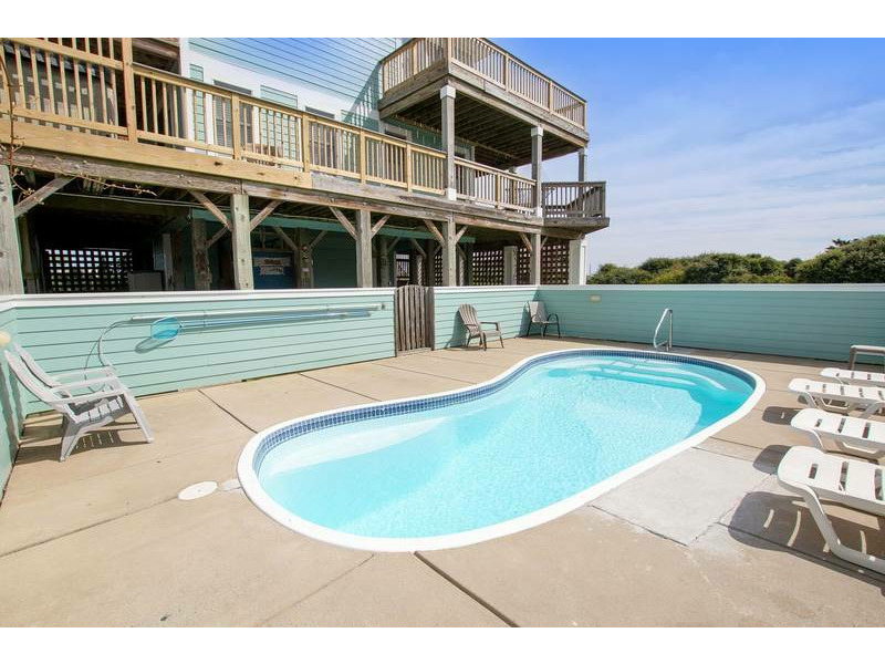 Extras: Private Pool (12 x 26), hot tub, two 4x4 parking passes (with $50 cash deposit), 4 TVs (streaming), 2 DVDs, wireless internet, gas & charcoal grills, ships watch, beach toys, beach chairs, screened porch, high chair, baby gate, hammock, outside shower, corn hole, movies, books, puzzles, water cooler with hot and cold options (water bottles not supplied) and linens and towels provided. No Smoking. Dogs Welcome. Seasonal Flex Stay available from October 1 - May 15.House Address: 1614 Sandpiper, Carova. Beds: 2 King, Queen, DuoBunk, Trundle. Distance to beach access: 500'. Key Type: Keyless entry. CHECK IN LOCATION: 1023 Ocean Trail, Corolla Office.