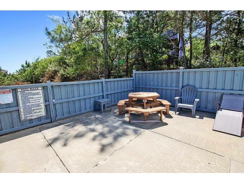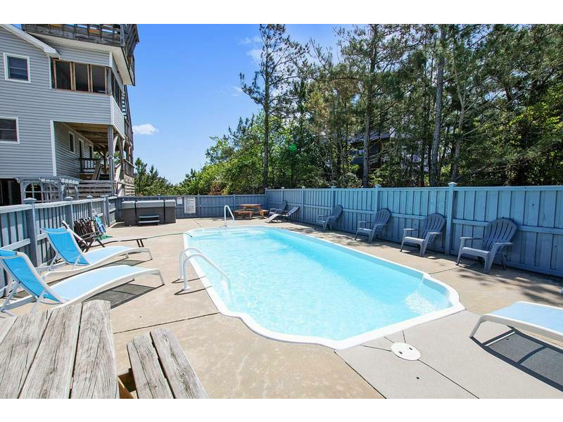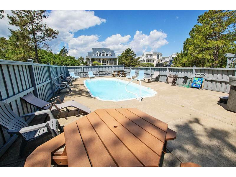 Extras: Private Pool (11x30), Hot Tub, 4 TVs, 2 refrigerators, high speed internet, charcoal grill, picnic table, screened porch, outside shower, traditional coffee maker and linens and towels provided. No Smoking. Dogs Welcome! Full week rentals only. House Address: 1065 Corolla Drive. Beds: 2 Queens 1 DuoBunk, 2 Bunk Sets. Distance to beach access: 1584'. Key Type: Keyless Entry. CHECK IN LOCATION: 1023 Ocean Trail, Corolla Office.