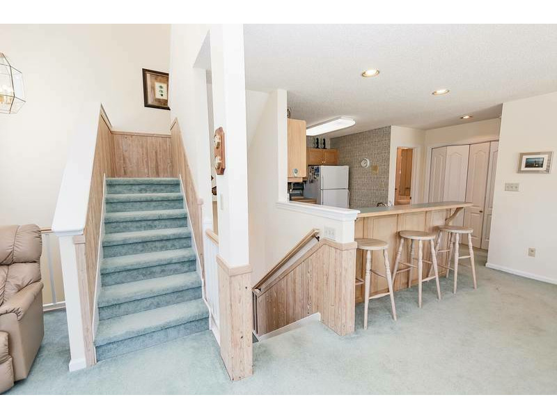 Mid Level: Great room with flat-screen TV, dining room seating 9 with deck access, kitchen with counter seating for 3, half bath and the laundry area with washer and dryer.  Queen Master Bedroom with flat- screen TV, deck access and private bathroom with walk in shower.