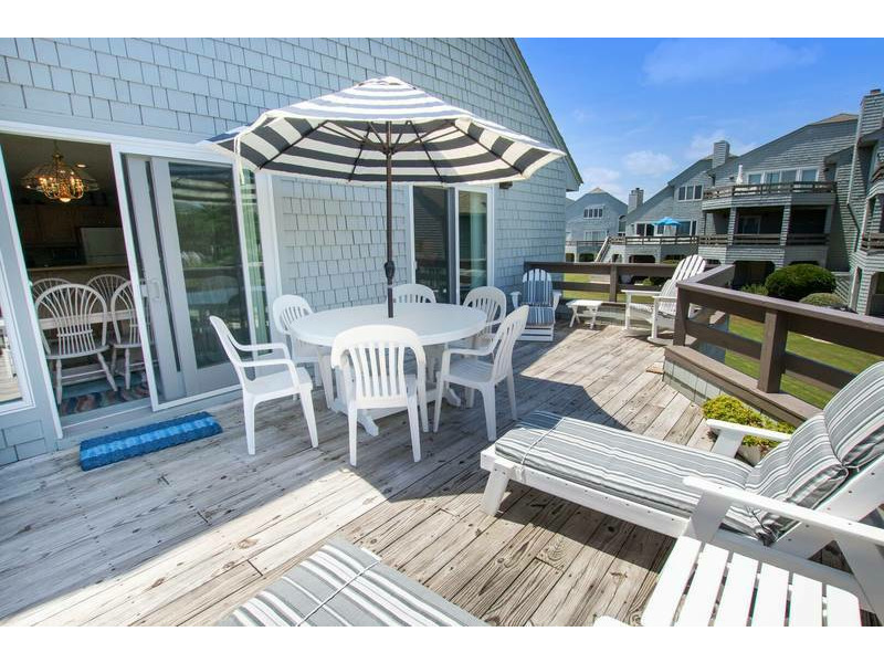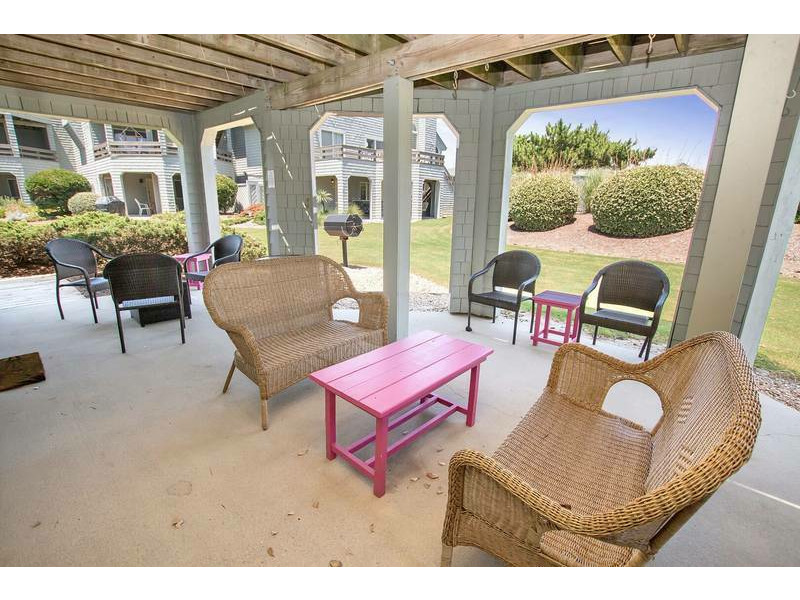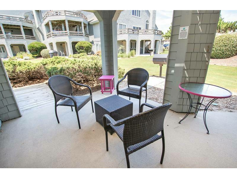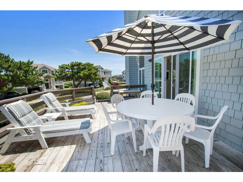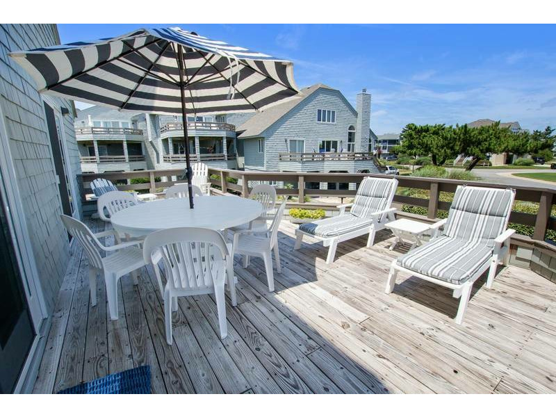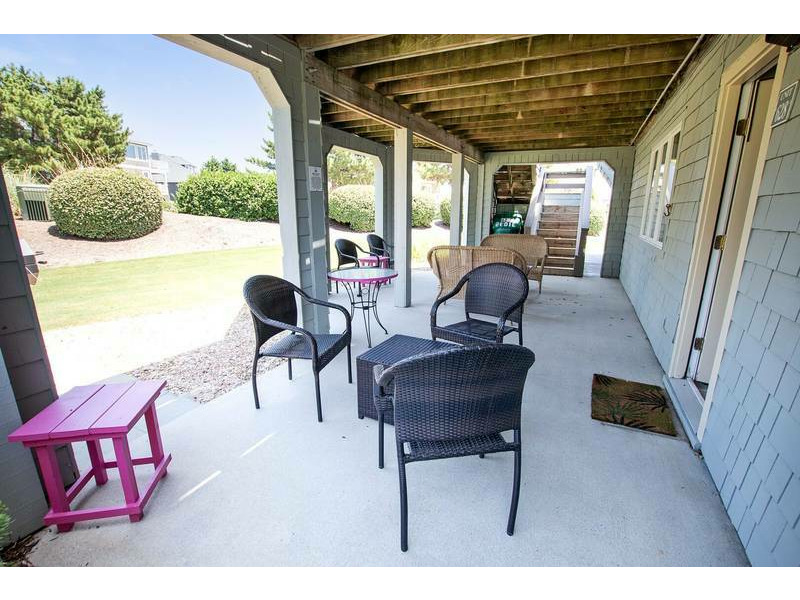 Enjoy Corolla Time in this east-end Oceanside villa located an easy walk to the beach, basketball, volleyball, shuffleboard, tennis courts, oceanfront community pools, playground, Corolla Light Shops and the Corolla Lighthouse. The seasonal trolley will give you a ride to the to the indoor sports complex and sound-side pools. Comfortable and tastefully decorated, the kitchen is well equipped for your culinary enjoyment, and an office desk and chair are located in a first-floor bedroom for a remote office space. All mattresses and box springs are encased to prevent bed bugs, and an extra refrigerator is located in the garage along with corn hole and children's beach toys. A new living space with loveseats, chairs, and tables has been created on the patio below the deck to avoid the summer heat while enjoying the breezes. If it's an inside day, a bookcase along with a bin in one of the first floor bedrooms has books, puzzles, and games.