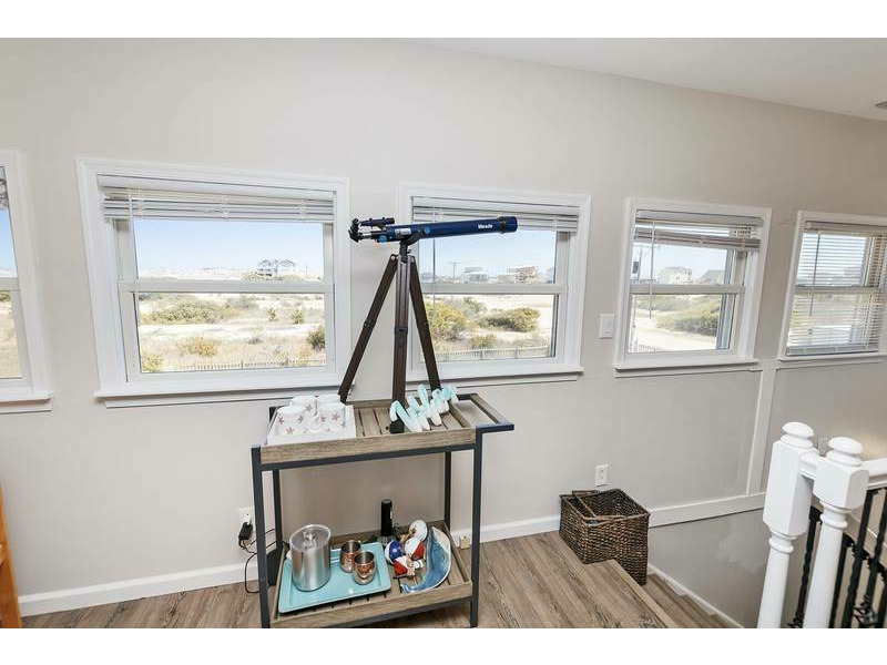 Extras: Two 4x4 parking passes (with $50 cash deposit), 3 TVs, sound bar, outside shower, high speed internet, gas grill, 2 picnic tables, arcade game, Keurig & Traditional coffee makers, air fryer, frisbee golf, corn hole, sun deck, covered patio and linens and towels provided. No Smoking. Dogs Welcome (3 max). Seasonal Flex Stay available from October 1 - May 15. Beds: King, Queen, 2 Singles. House Address: 1701 Midland Road, Corolla. Distance to beach access: 1045'. Key Type: Keyless entry. CHECK IN LOCATION: 1023 Ocean Trail, Corolla Office.