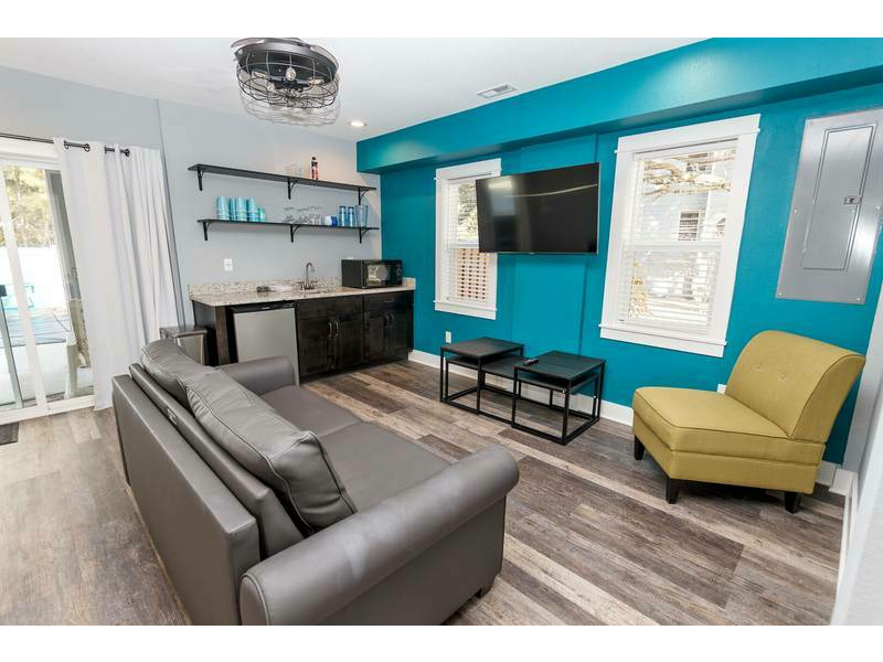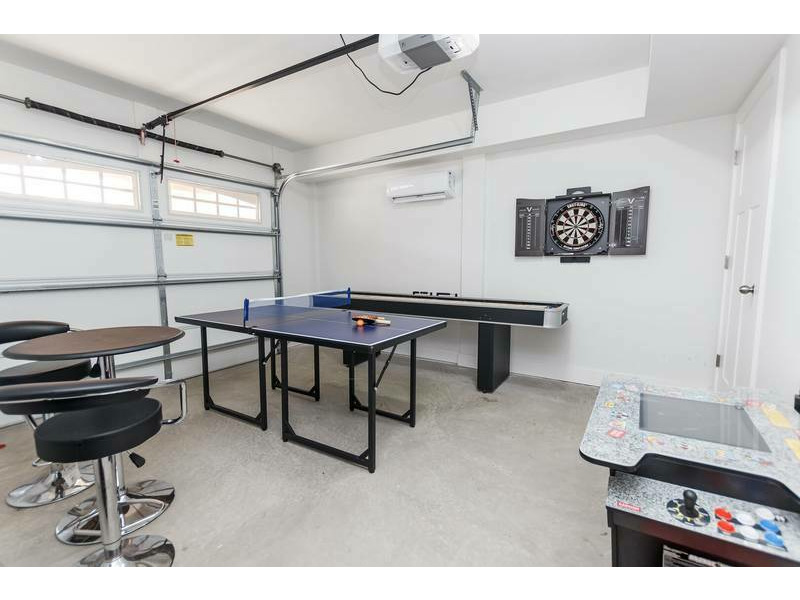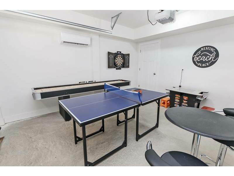 Ground Level: Exterior amenities include a fully gated private pool with hot tub, outside shower and charcoal grill. Inside you'll find an Elevator with access to all levels. Climate controlled garage/Recroom with ping-pong table, dart board, multi-cade arcade game and a shuffleboard. Den with Queen Sleep Sofa, 50" flat-screen TV, pool deck access and a kitchenette with mini-refrigerator, sink and microwave. Bedroom with 2 Double Beds, 50" flat-screen TV and a semi-private full bathroom (second door from bathroom to living areas).