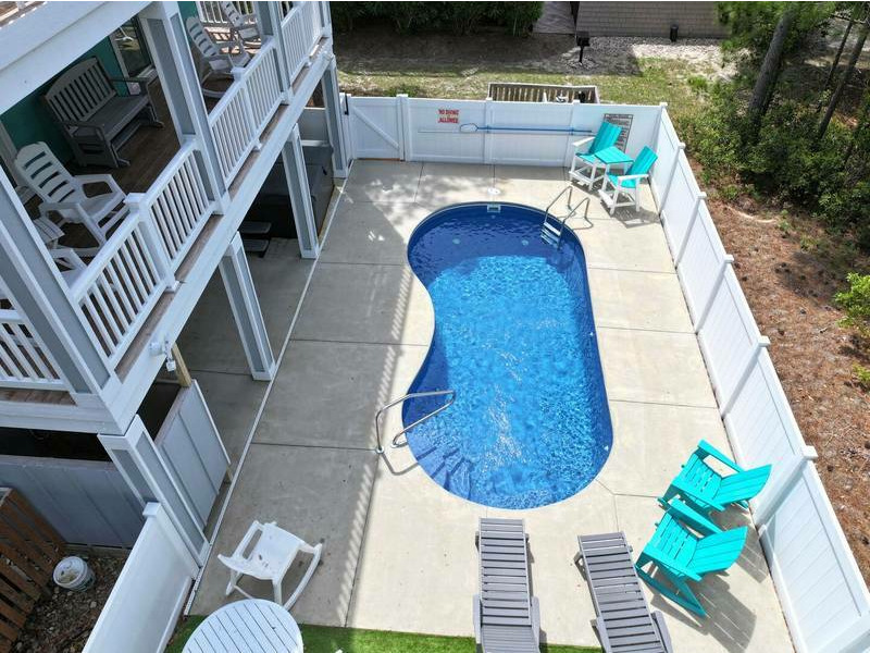 Extras: Private Pool (11x22, heated for $500), Hot Tub, ELEVATOR, 6 large TVs, electric fireplace, ping-pong table, shuffleboard, dart board, multi-cade arcade game, kitchenette with mini-refrigerator, desk, outside dining table, outside shower, high chair, charcoal grill, parking for 4-5 vehicles, linens and towels provided, community water and Monteray Shores Community Amenities. No Smoking. Dogs Welcome (2 max). Seasonal Flex Stay available from October 1 - May 15. House Address: 853 Seascape Court. Beds: 1 Kings, 2 Queen, 2 Doubles, Queen Sleep Sofa. Key Type: Keyless Entry. CHECK IN LOCATION: 1023 Ocean Trail, Corolla Office.