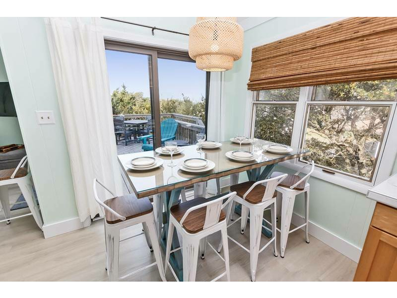 The spacious primary bedroom offers a cozy queen bed and convenient access to a shared half bathâ"perfect for recharging after a sun-soaked day. Just steps away, the fully equipped gourmet kitchen is a treat for foodies and casual cooks alike, blending style and function for anything from quick snacks to full-on feasts. The open layout flows effortlessly into a bright, welcoming living area and out onto the sun deck, where water views, morning coffee, and evening wine quickly become part of your daily ritual. Upstairs, the top deck invites you to dine al fresco with new outdoor furniture and a dining table made for long, breezy meals under the sky.