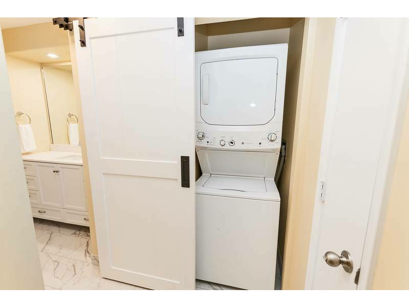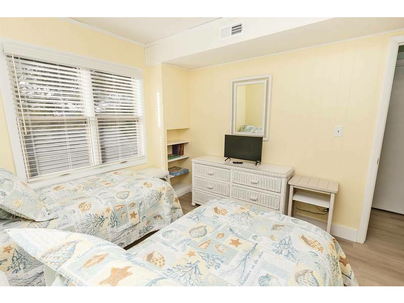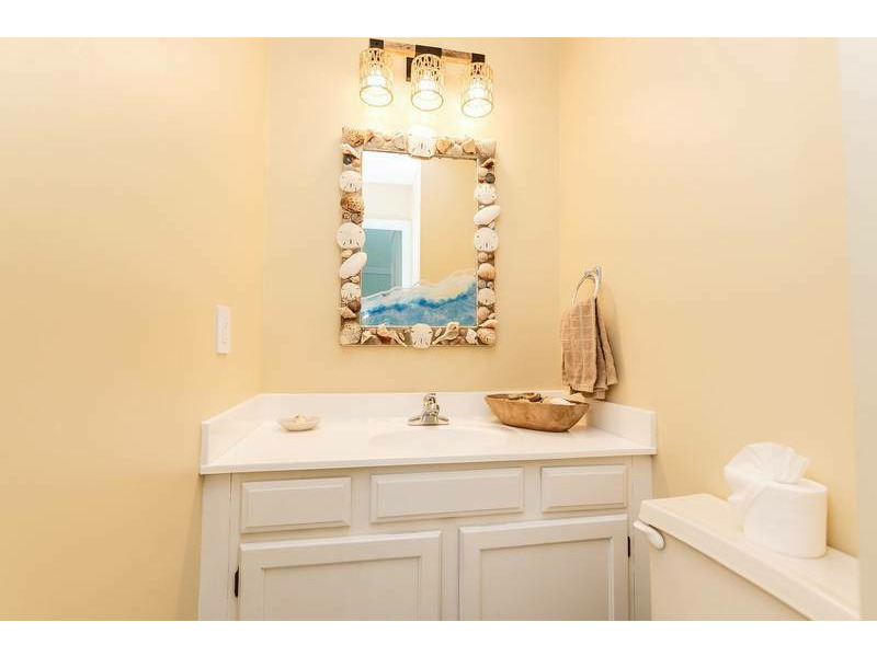 On this level, you'll find a bright and inviting queen bedroom, along with a second bedroom featuring two twin bedsâ"perfect for families or groups. Both offer a cozy retreat after a day on the water. The updated full bathroom boasts a beautiful ceramic-tiled walk-in shower with sleek glass sliding doors, modern fixtures, and a new vanity top, adding both style and convenience. A washer and dryer are also located on this level, making it easy to keep your beach gear fresh and ready for the next adventure.