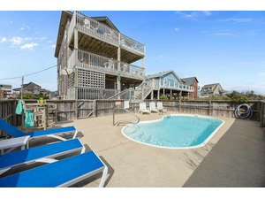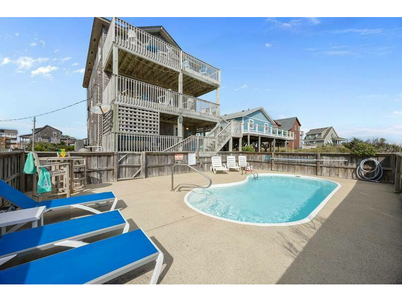 Extras: Private pool, hot tub, ocean view, game room, Foosball table, arcade game, cornhole, sundeck, Polywood deck furniture, enclosed outside shower with hot and cold water, fish cleaning station, charcoal grill, Keurig, traditional coffee pot, high-speed internet, and free Wi-Fi. No Smoking/Vaping. Dogs Welcome. Beds: 4 King, Pyramid Bunk, and Trundle (Single over Double). Type: Keyless Entry. Check-In Location: At the Property.