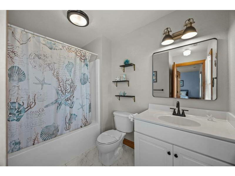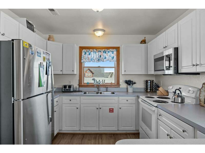 Mid-Level: The mid-level features three inviting bedrooms, each equipped with a flat-screen TV for late-night movies or unwinding after a day in the sun. A king bedroom opens onto a breezy covered deck, where you can relax in the shade and enjoy the salty airâ"an ideal spot for morning coffee or a quiet evening chat. Another bedroom features a fun pyramid bunk with trundle (single over double) and also has direct access to the front deck, making it an excellent hangout for kids or extra guests. The third bedroom, another cozy king, offers easy access to a shared full bath. This floor has a great mix of comfort and family-friendly space.