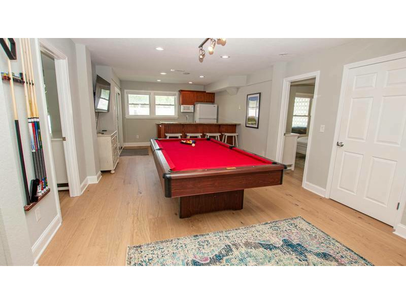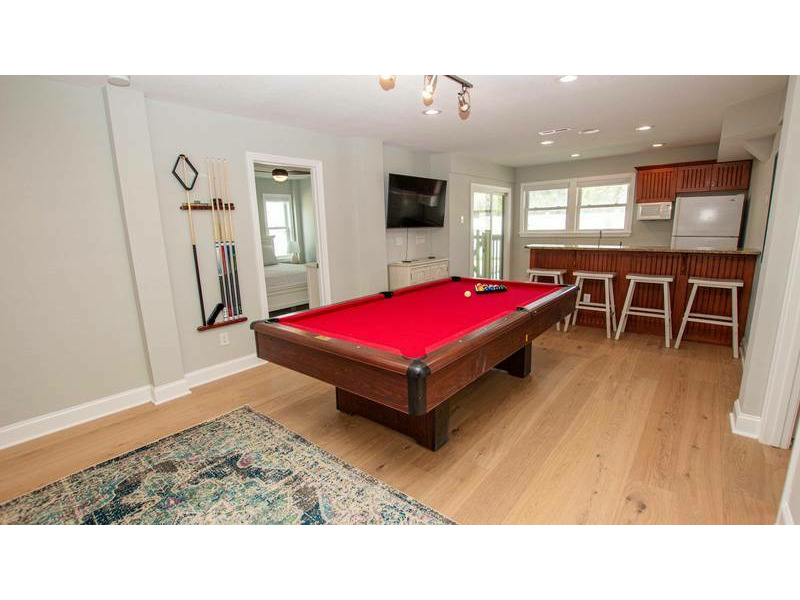 Ground Level: Exterior amenities include an enclosed private pool and hot tub, gas grill and outside shower. Inside you'll find elevator access to all levels, a Recroom with a flat-screen TV, pool table and kitchenette with counter seating for 5, full-size refrigerator, microwave, sink, dishwasher and deck access. Theater Room with a large flat-screen TV/Blu-Ray DVD and tiered seating. Queen Master Bedroom with TV/DVD, Queen Bedroom, Bedroom with a DuoBunk, Bunk Set and TV/DVD (for use with DVD only) and a full hall bathroom.