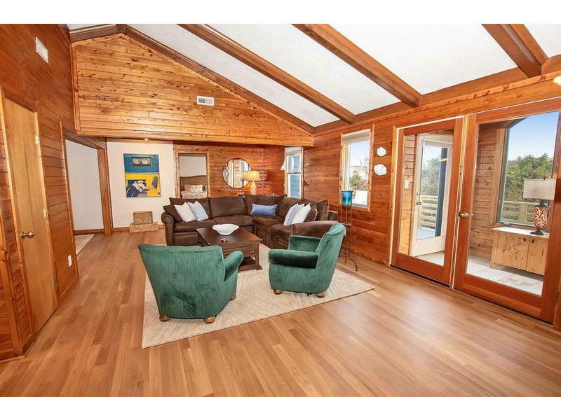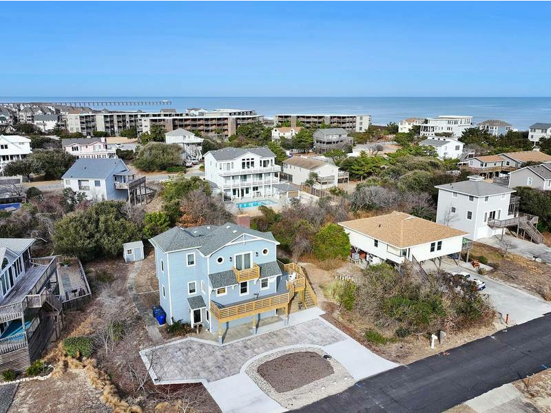 Extras: ELEVATOR, 4 TVs, gas fireplace (available November 1-April 30), 2 full size refrigerators, free standing ice-maker, standard coffee maker, wireless high-speed internet access, books and games, outside shower, gas grill, cornhole boards, parking for 5 vehicles, and linens and towels provided. No Smoking. No Pets. Seasonal Flex Stay available with a 3-night minimum (October 1 to May 15). House Address: 136 Cook Drive. Beds: King, 2 Queens, 1 DayBed. Key Type: Keyless entry. CHECK IN LOCATION: 1213-C Duck Road, Duck Office.