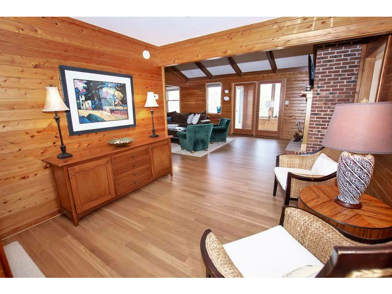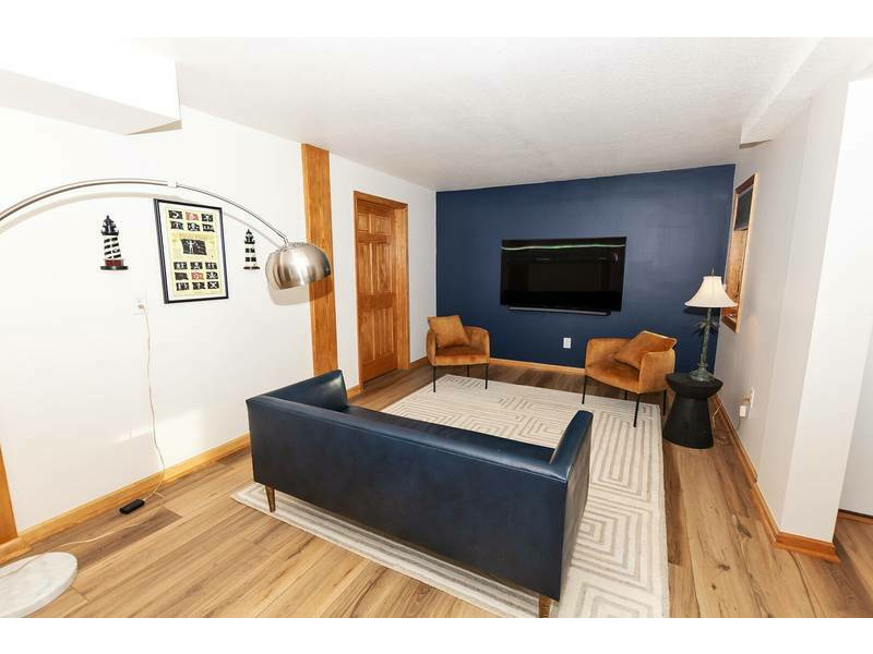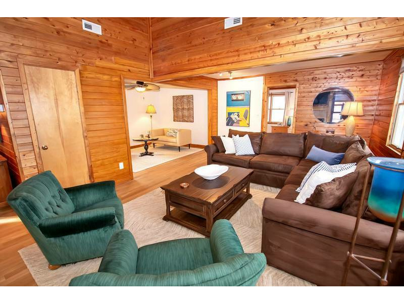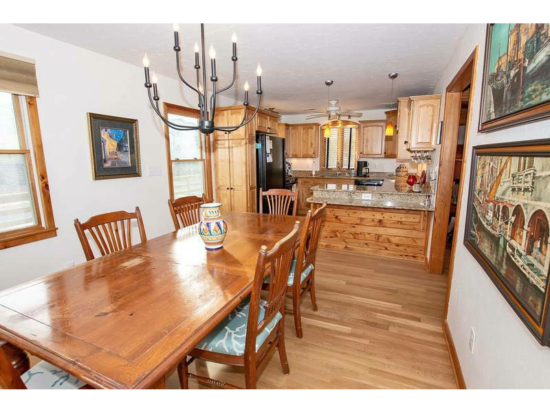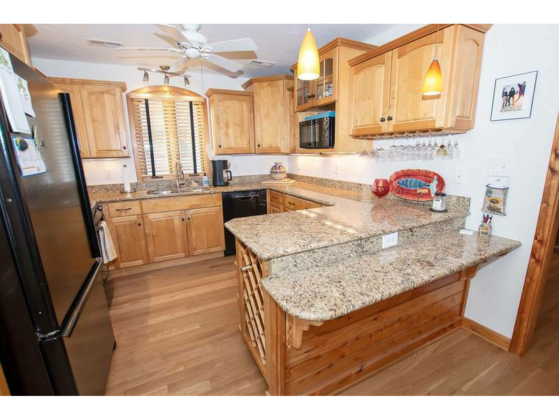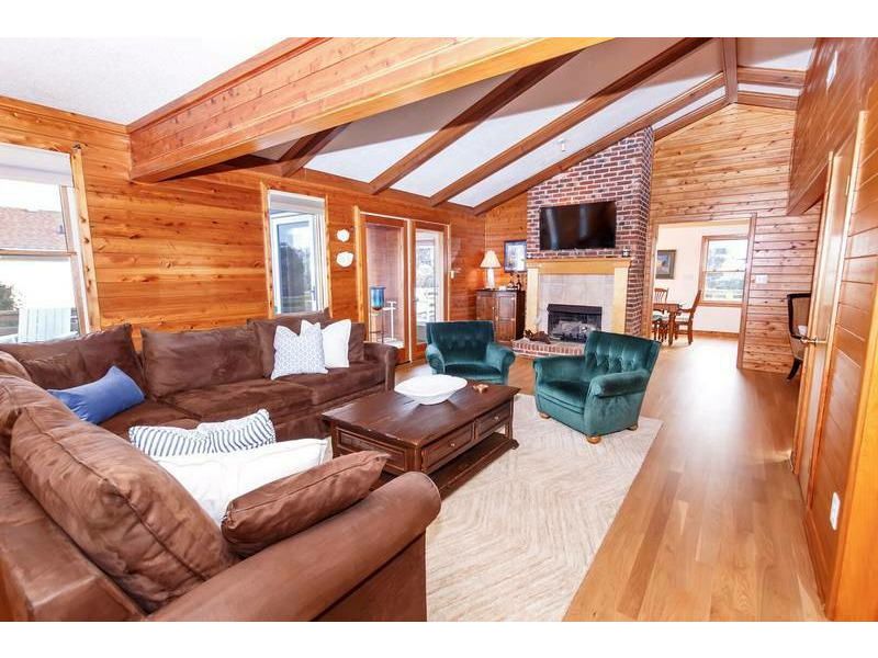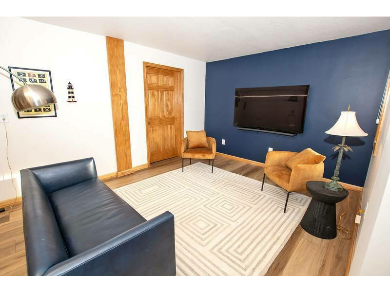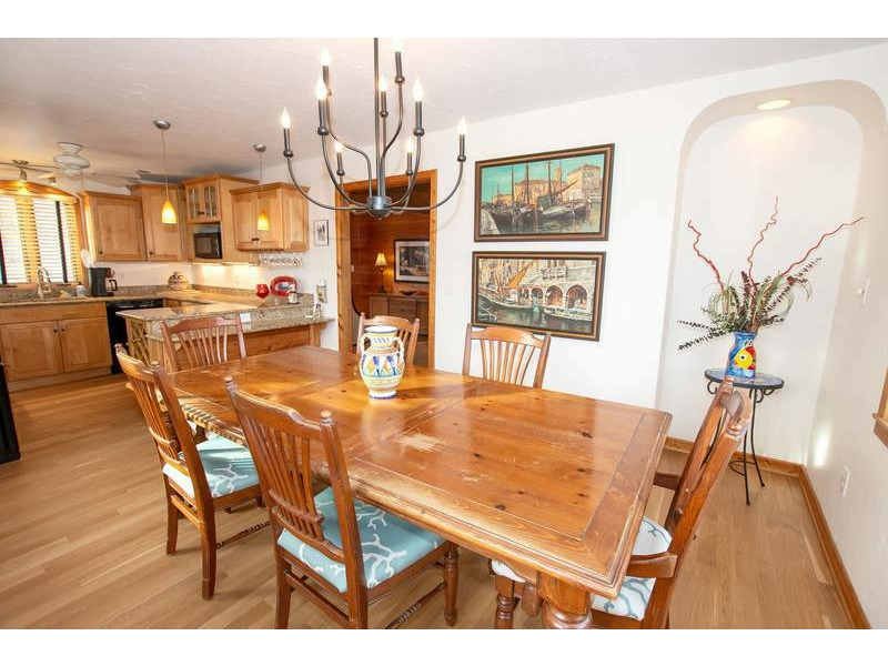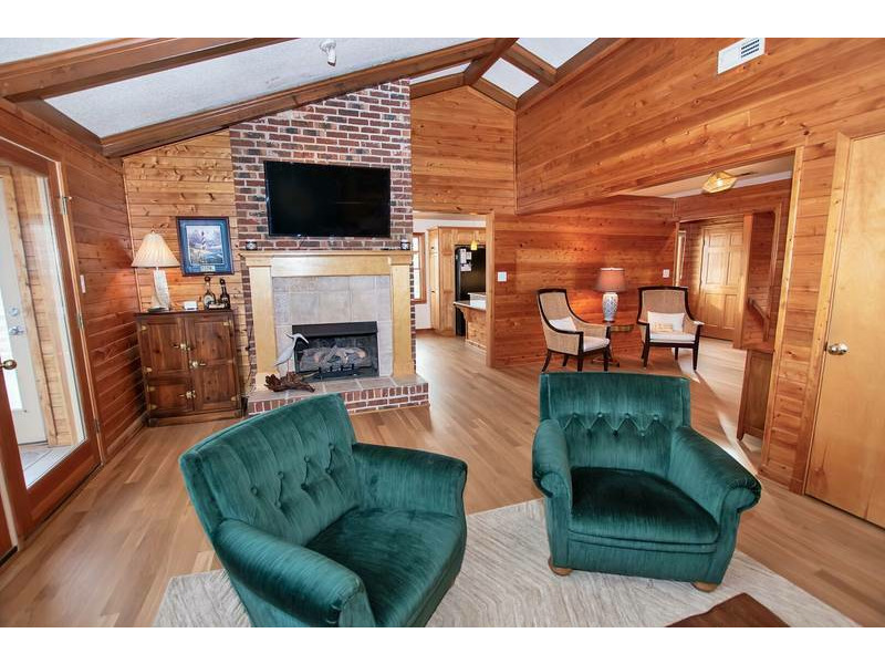 Mid Level: Great room with flat-screen TV, gas fireplace and deck access, sitting area with half bath, kitchen with free standing ice-maker and dining area seating 6, King Master Bedroom with private bathroom and deck access.