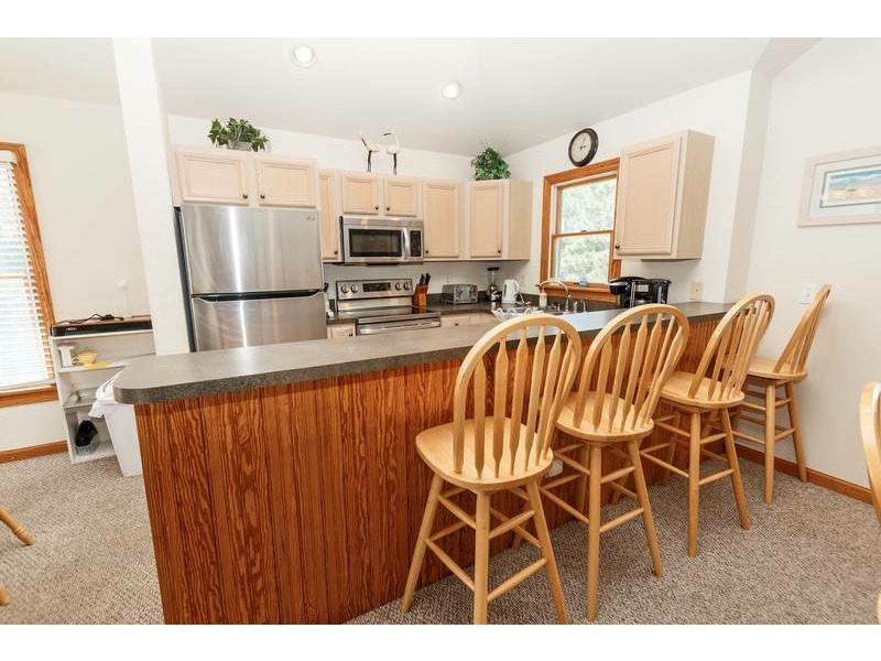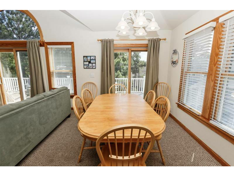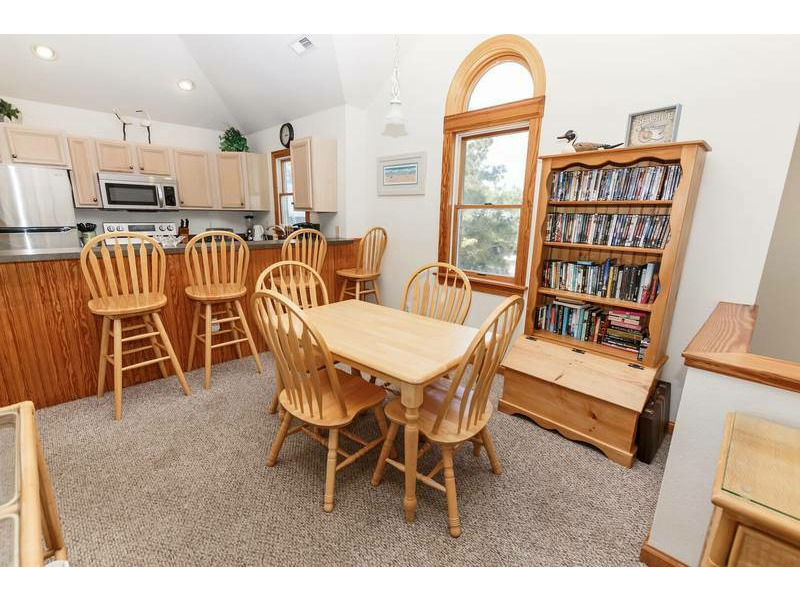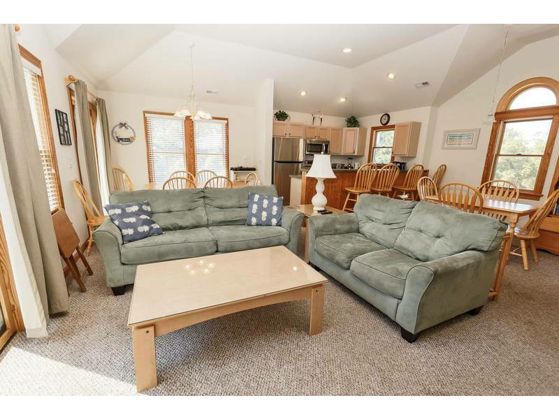 Top Level: Great room with TV/DVD, kitchen with counter seating for 4, dining room seating for 12, and a King Master Bedroom with TV/DVD and deck access.