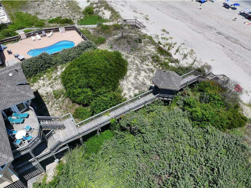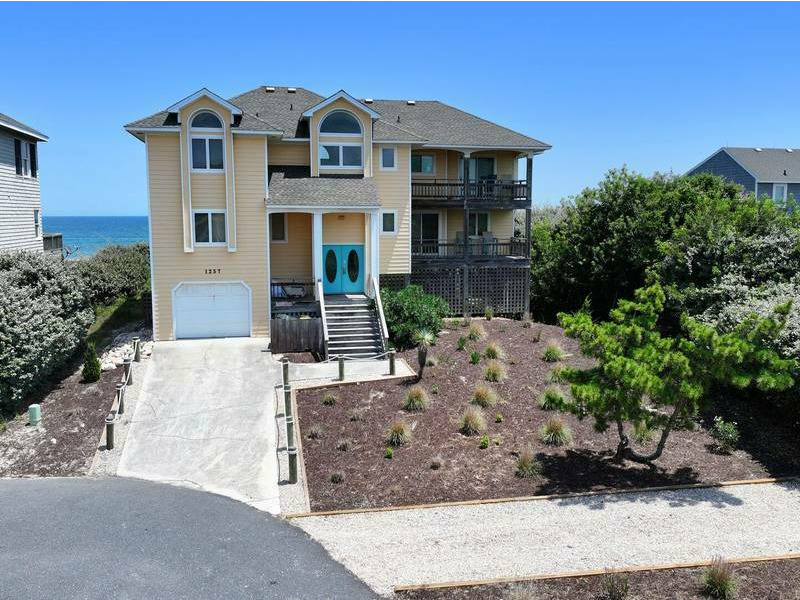 Extras: 6 TVs, 4 VCR, DVD player, wireless high-speed internet access, lighted beach access with dune top gazebo, outside shower, gas fireplace (available November 1-April 30), gas grill, wet bar, public water, parking for 3 vehicles (no more than 3 vehicles will fit in the driveway), linens and towels provided and Villages at Ocean Hill Community Amenities. Special Events Welcome, 75 guests. No Smoking. Dogs Welcome. Full week rentals only. Distance to beach access: Oceanfront. House Address: 1257 Sandcastle Drive. Beds: 4 Queen, Double, 2 Bunk Sets. Key Type: Keyless Entry. CHECK IN LOCATION: 1023 Ocean Trail, Corolla Office.