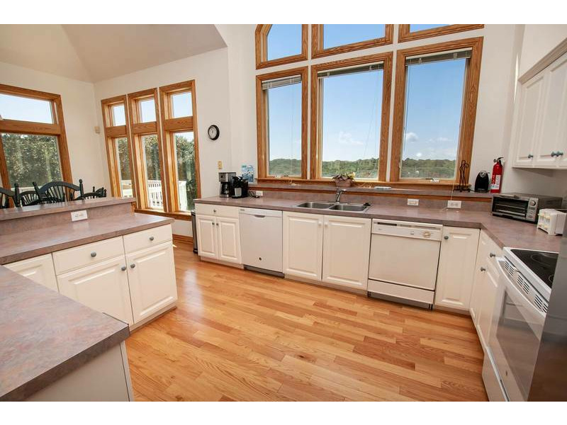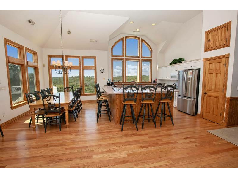 Top Level: Great room with TV/Blu-Ray DVD, stereo/CD, surround sound system and gas fireplace, kitchen with 2 dishwashers, breakfast bar seating 6, dining room seating 10, desk, half bath, screened porch with 2 picnic tables, deck with gas grill, Ship's Watch, and a King Master Bedroom with TV, private balcony, whirlpool tub, and dual head shower with seat.