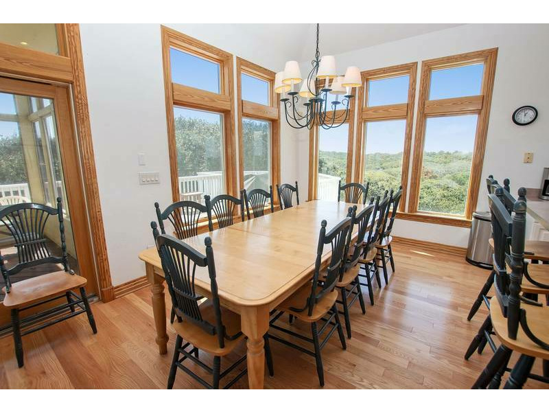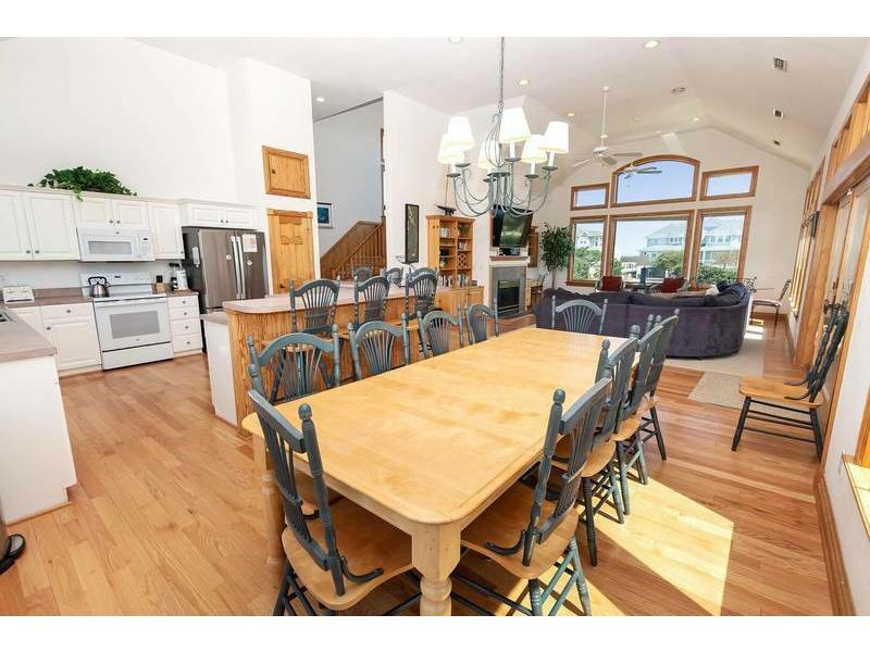 Extras: Private Pool (18 x 36), Hot Tub (6), 8 TVs (6 are smart TVs / Netflix, Hulu, etc ready with guest account), 1 Blu-Ray, 1 DVD player, 2 stereos receivers, surround sound system, wireless high-speed Internet access, DVD/book libraries, high chair, pack-n-play, foosball table, card/game table, basketball hoop, 2 swing sets, porch swing, hammock, 2 picnic tables, screened porch, 2 outside showers, gas fireplace (available November 1-April 30), gas grill, wet bar, public water, parking for 7 vehicles, linens and towels provided and Pine Island Amenities. No Smoking. No Pets. Seasonal Flex Stay available from October 1 - May 15. Special Events Welcome, 75 guests. Distance to beach access: 125'. House Address: 370 Deep Neck Road. Beds: 3 Kings, Queen, 2 Singles, 2 DuoBunks, Double SS (sleeps 18 with sleep sofa). Key Type: Keyless entry. CHECK IN LOCATION: 1213-C Duck Road, Duck Office.