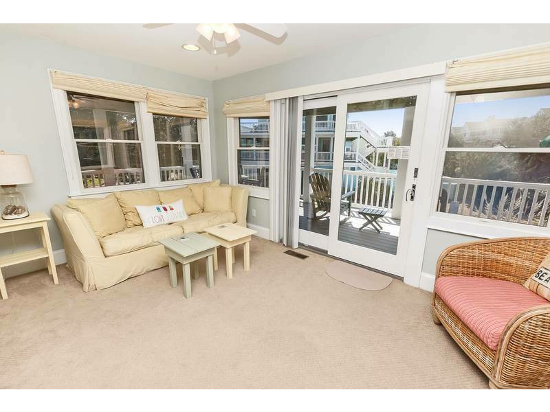 Top Level: There's plenty of room to gather in the Great Room/Kitchen with abundant natural light, brand new floors, high ceilings, plush seating, flat-screen TV, half bath and access to a furnished sun deck with gas grill and furnished screened-in porch. The newly renovated kitchen overlooks the great room offering new stainless-steel appliances, 2 dishwashers, dining room seating for 12 and casual seating for 3 at the island. Steps lead up the the ship's loft with desk and seating. King Master Bedroom with new floors, flat-screen TV, private bathroom with dual vanity and whirlpool tub and private access to screened-in porch and deck.