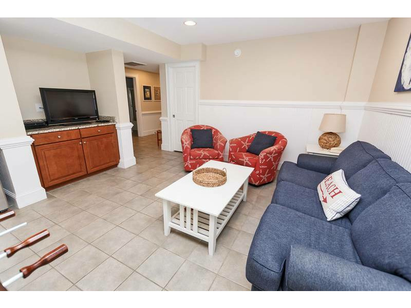 Ground Level: Exterior amenities include a fully gated private pool with lounge seating and an outside shower. Inside you'll find a Rec Room with Queen Sleep Sofa, flat-screen TV, foosball, collection of children's games and puzzles and a wet bar with sink, microwave and full size refrigerator.   Queen Bedroom, 2 full bathrooms  and the laundry area with washer and dryer.