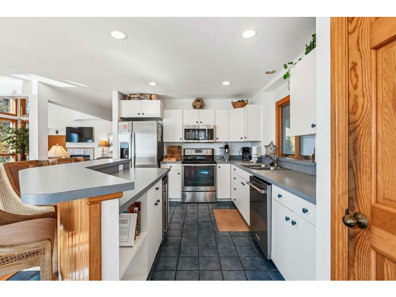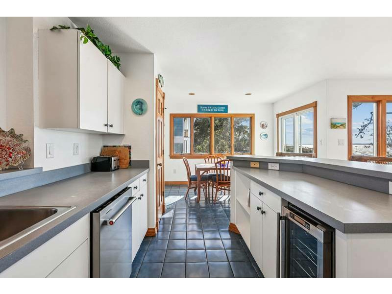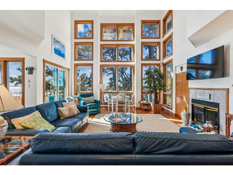 Mid Level: Bright great room with floor-to-ceiling sound view windows, Smart TV, gas fireplace; open dining for 8; kitchen bar (3), breakfast nook with seating for 4; half bath; King Master En Suite with TV, whirlpool tub & private balcony.