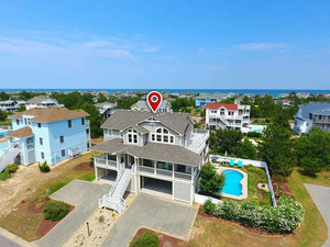 Located in Corolla/ Oceanside 6 Bedroom/ 5.5 Bathroom luxury home in Corolla Light Resort - elevator, heated pool (fee), tiki bar, views, smart home.  This Oceanside 6 bedroom, 5.5 bath luxury smart-home is located in the Corolla Light Resort.