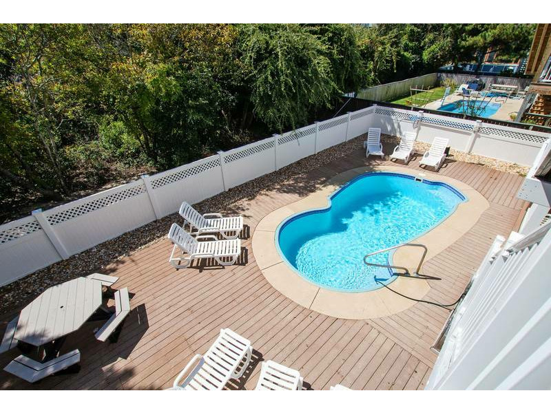Extras: Private Pool (12 x 21), Hot Tub, ELEVATOR, 10 TVs, DVD, VCR, pool table, gas grill, high chair, games, videos, high-speed wireless internet, gas fireplace (available November 1 - April 30), linens and towels provided and Ocean Lakes community pool and tennis. No Smoking. No Pets. Full week rentals only.  Distance to Beach: 130'. Beds: 2 Kings, 3 Queens, 4 Bunk Sets. House Address: 646 Wave Arch. Key Type: Keyless entry. CHECK IN LOCATION: 1213-C Duck Road, Duck Office.