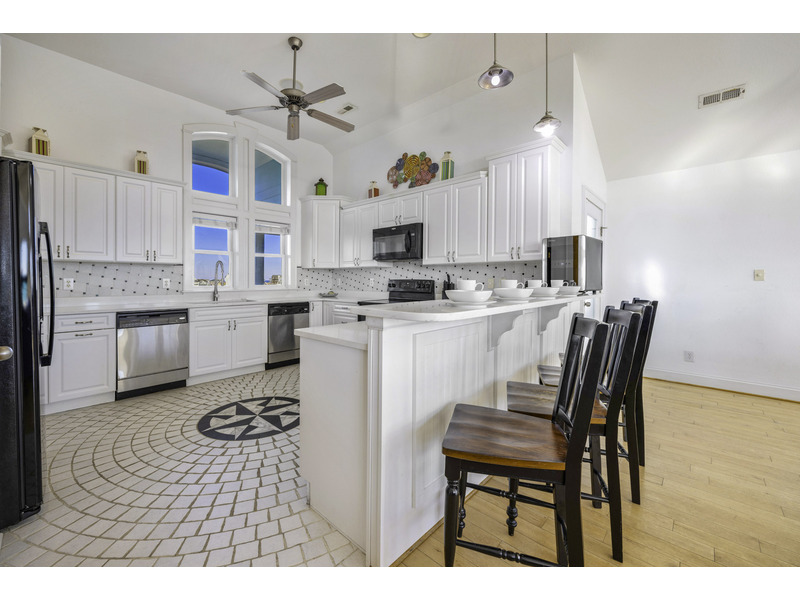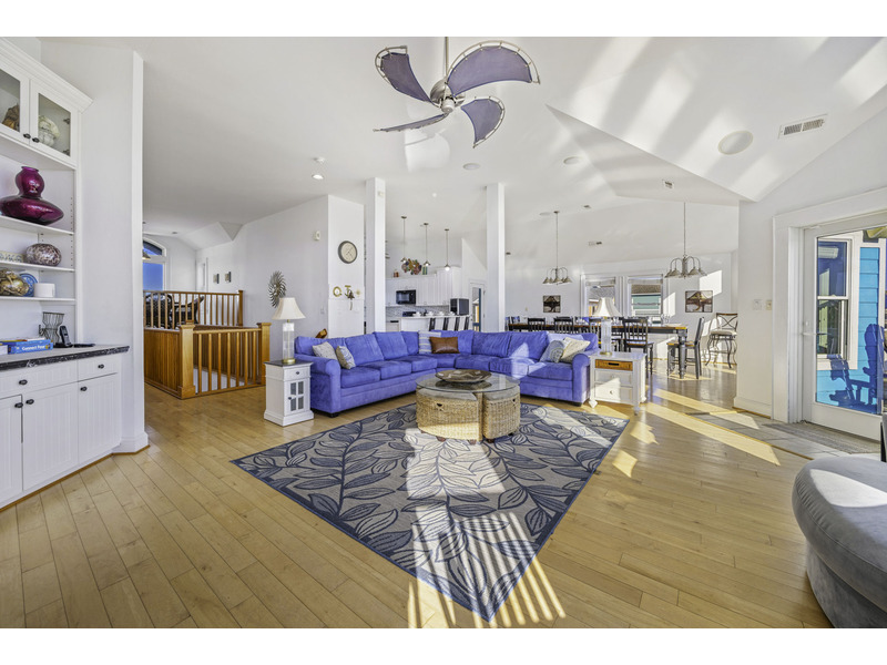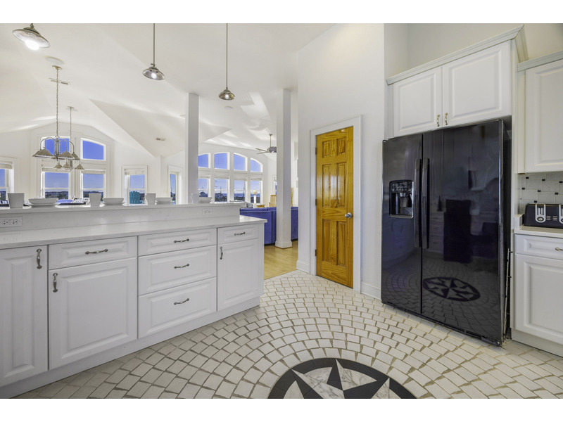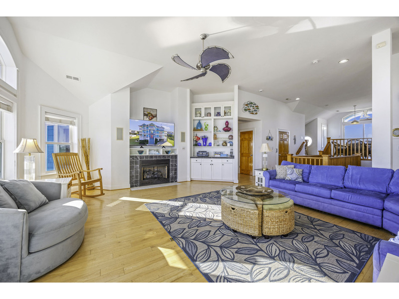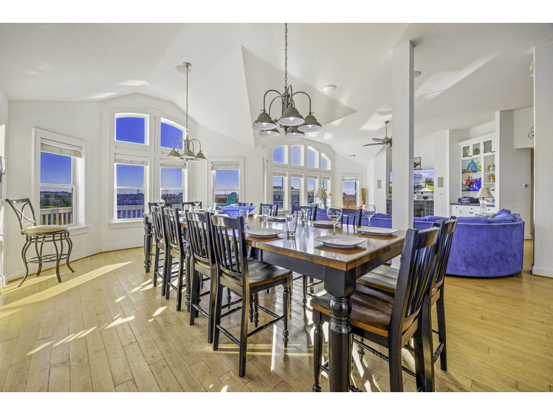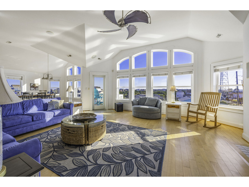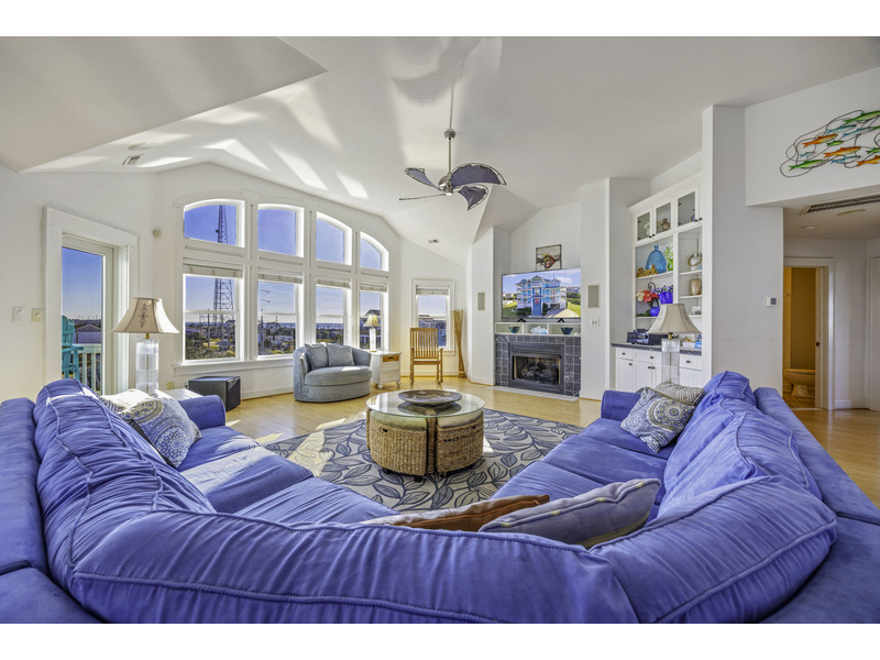 OCEANVIEW Rodanthe - Hatteras Island Estates - From its prime location near the beach, all 5,900 sq. ft. , to the many amenities of the home, you're sure to appreciate this PEACEFUL RETREAT. Green features set this home apart with its large array of solar panels and electric car charging station. Generous parking area including some covered parking welcomes you with lockable underhouse storage for sporting gear and ground level access to the all-level elevator (with 4" entry lip) to make unloading luggage and groceries a breeze. The pool area extends to include a sizable entertaining area under and adjacent to the home featuring the decadent hot tub, a cedar grill gazebo, convenient half bath, full size refrigerator, plenty of seating for the group, and outdoor theater with a 1080p high def projector, 10 ft. screen, and Roku streaming to enjoy your vacation in style. Inside the home, indoor recreation begins with the expansive game room with pool table, foosball table, poker table, home theater system with flat screen TV and surround sound, and kitchenette with wet bar, full size refrigerator, microwave, ice machine and wine cooler. Also on the first level are two bedrooms, one king master bedroom with private bath and one bedroom with two pyramid bunks (one with a trundle) and a semi-private bathroom shared with the game room. The mid- level of the home will please the movie lovers in the group with a TV lounge/Den with home theater system with an 86" flat screen TV and surround sound. Also on this level are three more king master bedrooms and a second bedroom with two pyramid bunks (one with a trundle), and a semi-private bathroom. The top level great room offers vaulted ceilings, hardwood floors and water views through windows that bathe the room in light. Gather around the home theater system with large screen TV and surround sound while the chefs in the family prepare meals in the bright, open kitchen with breakfast bar and double dishwashers. The dining area features two large dining tables to seat the group. The final two king bedrooms are on this level, one of which is a king master suite with a separate tiled shower and decadent Jacuzzi tub. Escape just a few steps up from the great room to the loft area with breakfast table and slider to a veranda with ocean-to-sound views. A week or two in this PEACEFUL RETREAT is just a reservation away!