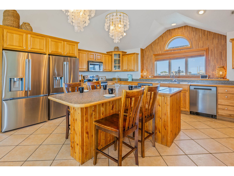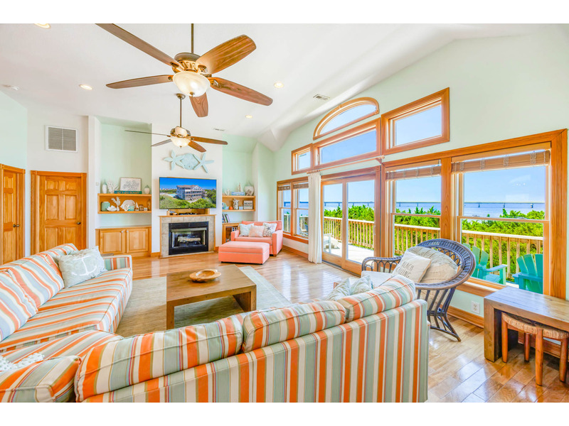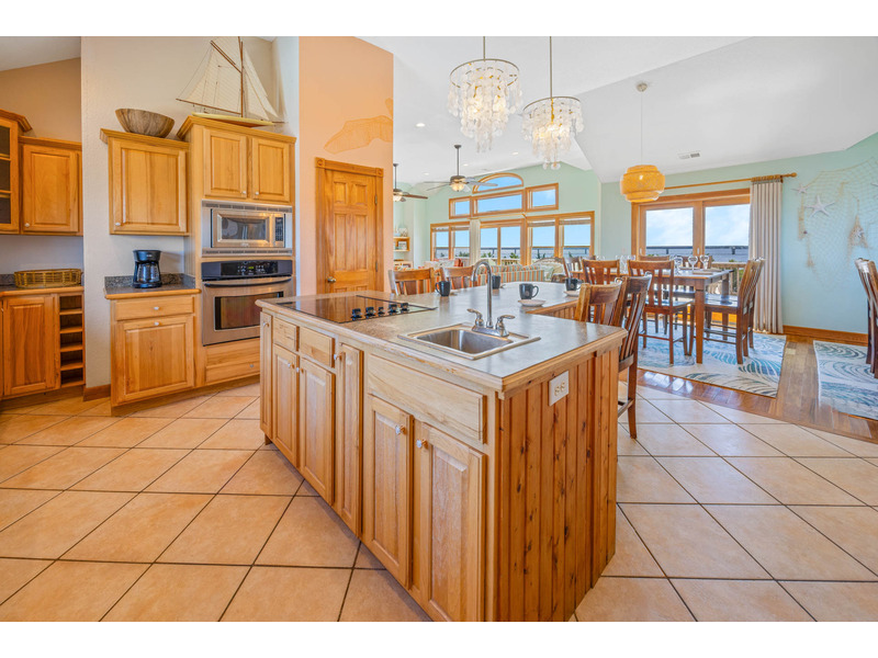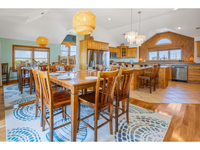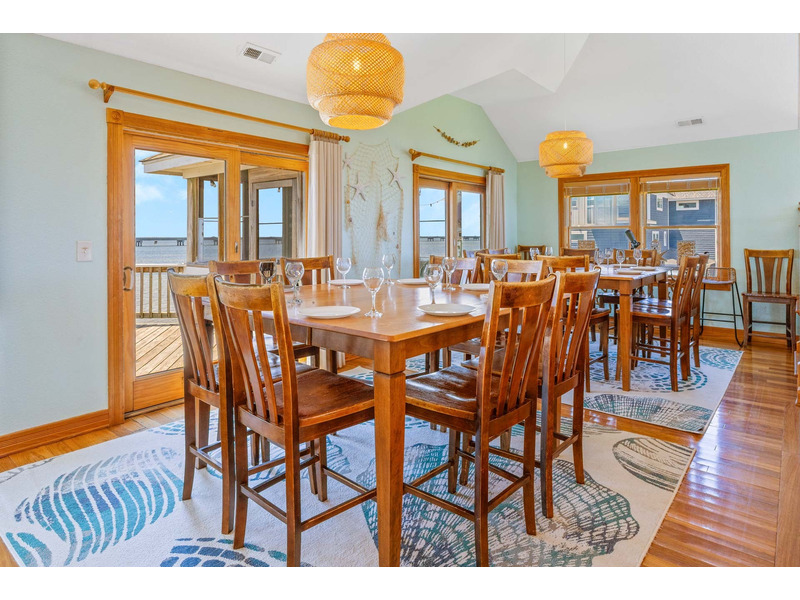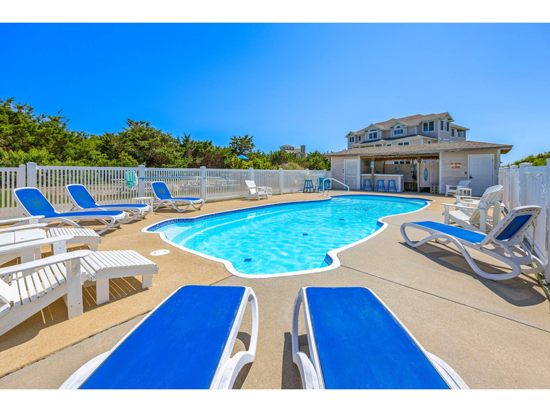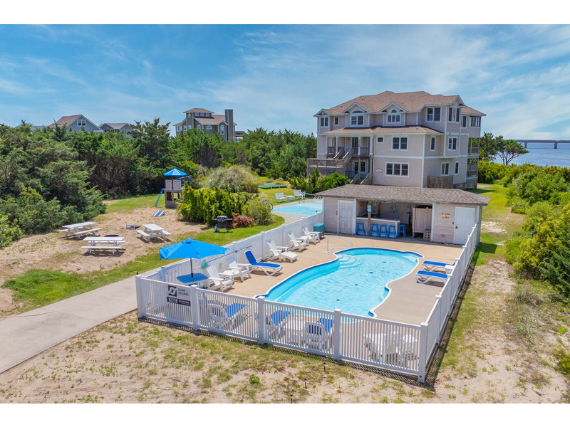 SOUNDFRONT Rodanthe - Mirlo Beach - LA FAMILIA, that's what life is really all about, and at 5,945 sq. ft. and 12 bedrooms, you can bring the whole family to this seaside estate. Situated on a private, shallow soundfront beach, this home is the perfect for water lovers looking to spend their days kayaking, paddle boarding, or fishing. Guests will also enjoy the large private pool, tiki bar, and soothing hot tub. After your fun in the sun, you will find plenty of entertainment in the game room complete with billiards, poker table, Smart TV, convenient wet bar with full size refrigerator and microwave. Also, on this level you will find three queen master bedrooms as well as two bedrooms that share an adjoining bath, one with a queen and one with two sets of bunks. On the second level there are six master bedrooms (four queens, one king, one with two twin beds), all bedrooms in the home have their own Smart TVs. The upper level of this home has one more king master bedroom with its own bubbly whirlpool tub to complete the accommodations in LA FAMILIA. There is room for all to gather in the spacious great room, featuring a separate reading area and captain's watch as well as a large seating area with a Smart TV and dining area, all with convenient powder room nearby. The kitchen has double of everything, 2 dishwashers, 2 refrigerators, 2 ranges and two work areas each with its own sink, all to make cooking LA FAMILIA style a breeze. Getting everyone up there is easy with convenient elevator service. With community tennis, private sound access, and Mirlo Beach community access to Pea Island all nearby, your reservation in LA FAMILIA will make you very popular with tu familia.