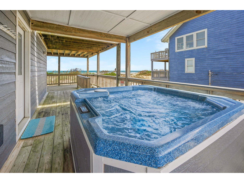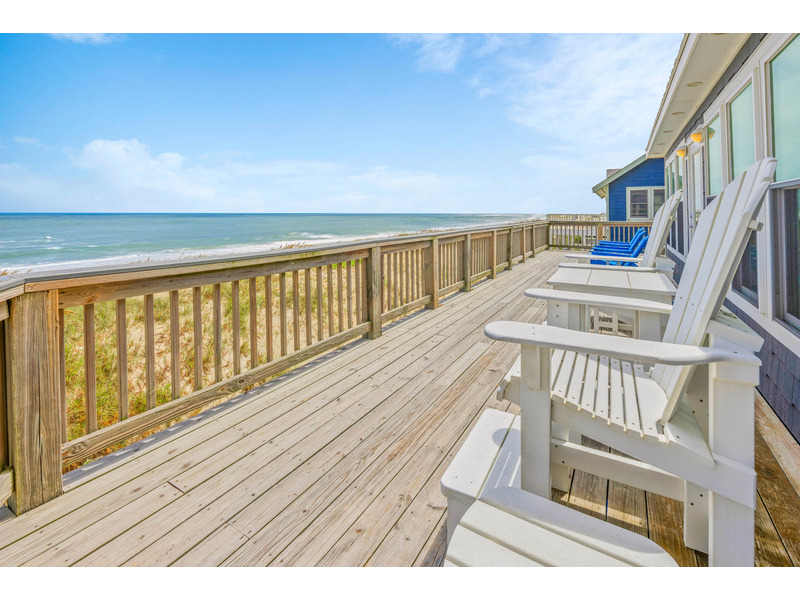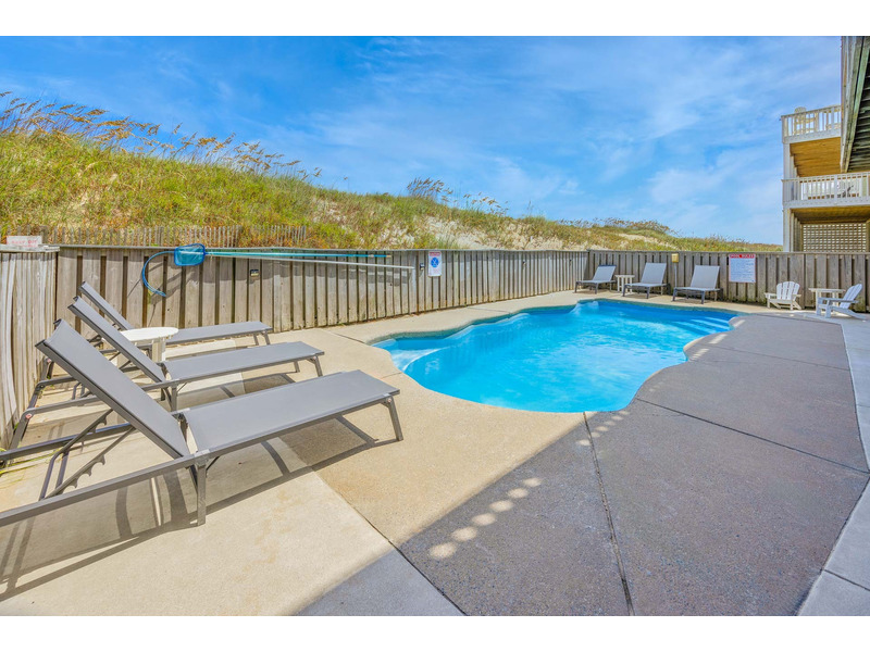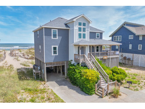 OCEANFRONT Avon- Oceanview Drive - Make yourself comfortable in ROBIN'S NEST. Along with the large oceanfront pool with poolside tiki bar with 43" flat screen TV, access to a cabana half bath and two outdoor showers, this home offers bountiful amenities inside. The ground level game room greets you with foosball table, 55" flat screen TV and BluRay player, sofa bed, refrigerator, half bath and laundry room. Step up to the mid-level foyer which opens two stories skyward and leads to a comfortable oceanfront retreat. There are three king master suites with private baths, all facing the ocean. Kids will love the double bunk bedroom with full hall bath. Additionally, queen bedroom can also be found on this level. Sunset and oceanfront decks with 6 person hot tub round out this level. Upstairs, tall cathedral ceilings open to the west entry view and a wall of oceanfront glass providing panoramic ocean views and a half bath. Your comfort was the priority in selecting the tastefully furnished and well-equipped upstairs living area featuring 65" flat screen TV with BluRay player and Surround Sound. Entertainment will be a pleasure with this gourmet kitchen with island bar, granite countertops, stainless steel appliances (including a gas range) and oceanfront dining for 12. A spacious oceanfront king master suite is located on this level as well. Enjoy the birds eye views from the top level deck. Alight in ROBIN'S NEST this year for a vacation to remember.