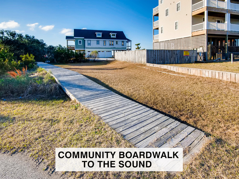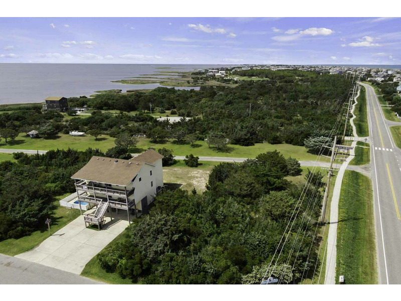 SOUNDSIDE Salvo - Sunset Drive - Life sure is GRAND at this soundside delight. The lockable watersports storage and the fact that the house is just steps away from the shared boardwalk to the sound makes GRAND BANKS a fantastic home for watersports enthusiasts. The ocean and convenient beach access are just a few short blocks away, and the private swimming pool and nearby bubbly hot tub are great for spending the day at the house. Step inside the slider into the game room with flat screen TV/DVD, pool table and wet bar with full size refrigerator and microwave. There is also a convenient half bath for quick trips in from the pool or sound. The mid level is home to 5 bedrooms including a king master with private bath, TV/ DVD, plus 2 king bedrooms that each share a bath with single & bunk bedrooms. The top level features one more king master bedroom with private bath and TV/DVD and a separate office space for a little quiet time. The top level great room is a grand place to gather with the family, prepare meals and dine with water views through the windows. Step outside onto the decks after dinner and watch the sun set over the sound. This house might be named GRAND BANKS, but the experience is worth a million. Book your stay today. Pets not permitted.