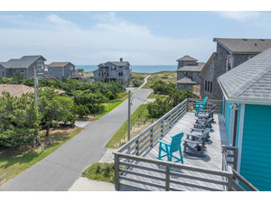OCEANSIDE Hatteras -- Sand Rd. -- Not only do you have a clear view of the ocean from SEE BLUE SEA, but gorgeous sound vistas enhance the experience of staying in this charming three-bedroom/two-full- and one-half-bath home located just a short walk from the boardwalk beach access. Painted a vibrant blue, your family will be inspired to match the joyful seaside vibe as you settle in to create those memorable vacation moments.