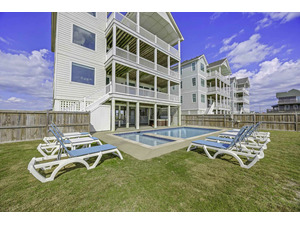 Although the dune crossing steps to the beach is just a few feet away, you may find yourself spending countless hours by the 14'x30' private pool with an inset tanning ledge that sparkles under the sun. Settle into a comfy chaise lounge or seek refreshment in the shaded tiki bar. There's a gas grill for prepping alfresco lunches and a shade protected six-person hot tub when a soothing soak is in order. An outdoor shower obliges those seeking a quick rinse off or a cooling respite.