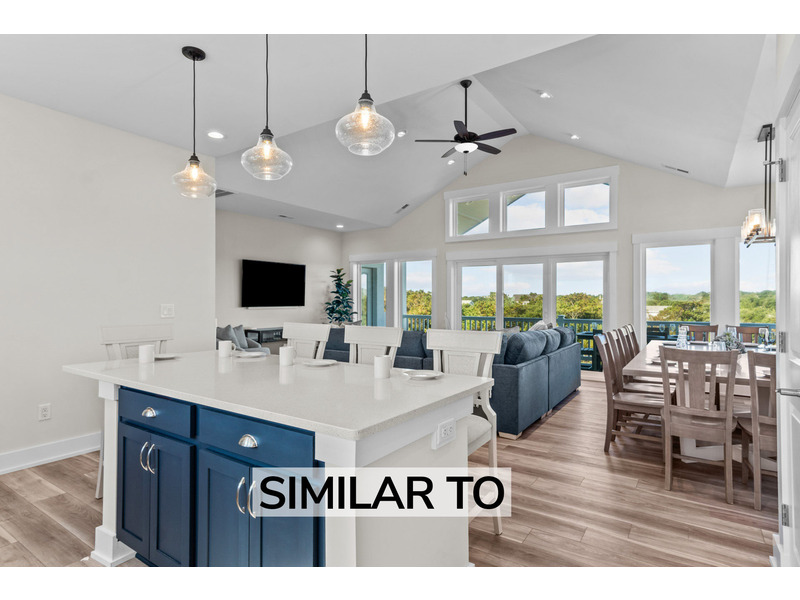 Ascend to the top floor, where two more king master bedrooms, one of which is handicap-friendly and equipped with a roll-in shower, await, a peaceful retreat just beyond the vibrant pulse of the great room. Here, the air hums with shared moments: delighted chatter as you create feasts in an expansive kitchen featuring two dishwashers, double wall oven, and a beverage refrigerator; long, lingering meals around a grand dining table; and entertaining evenings dedicated to game nights or movie marathons on the Smart TV. But the true magic lies just outside as you step onto the sprawling deck or screened porch and feel the gentle caress of the evening breeze as the sun dips below the horizon. Make CASTAWAY COVE the place that reinvigorates your soul and book it today.