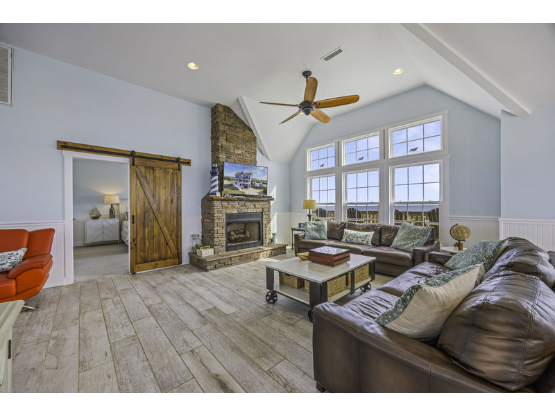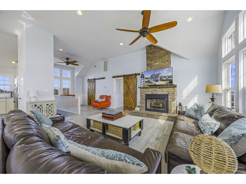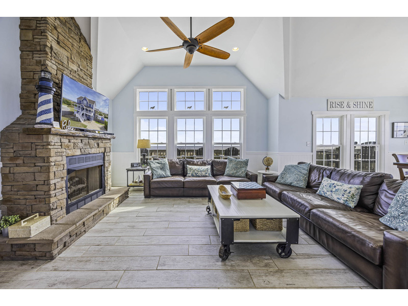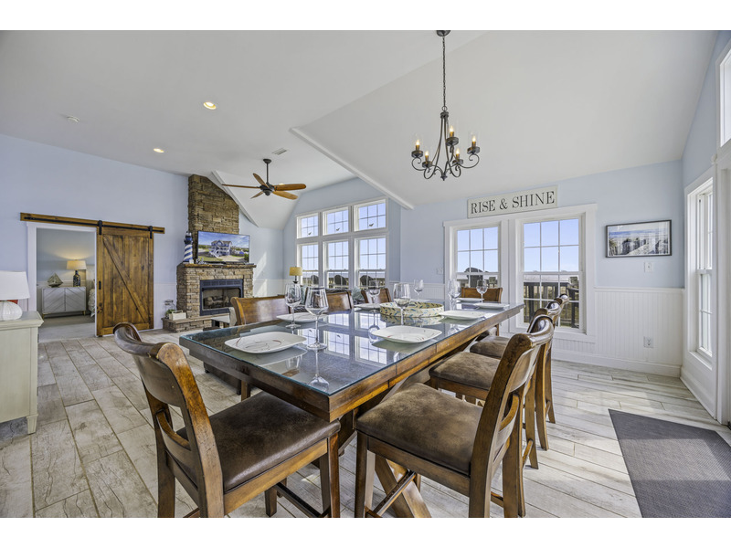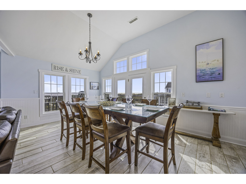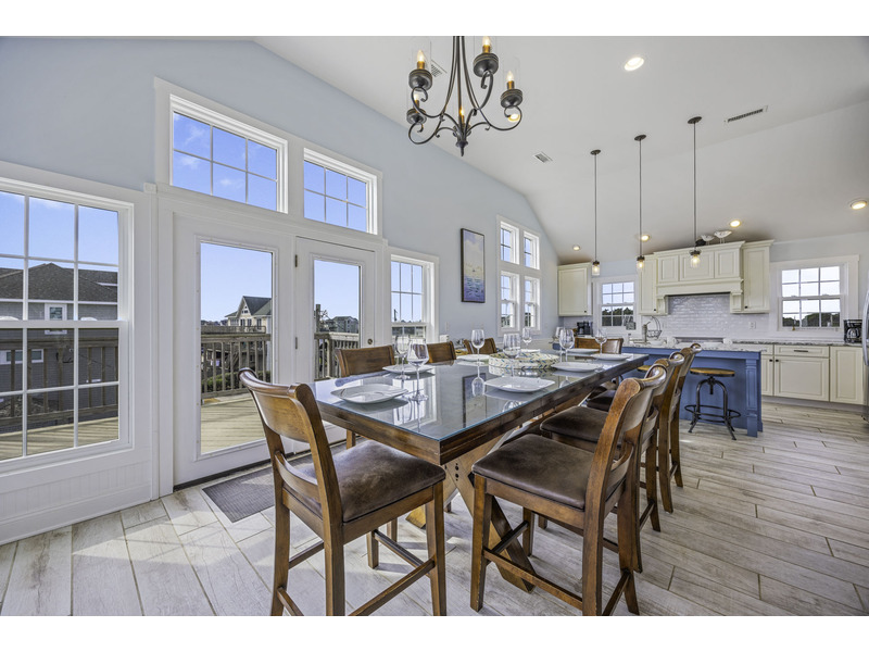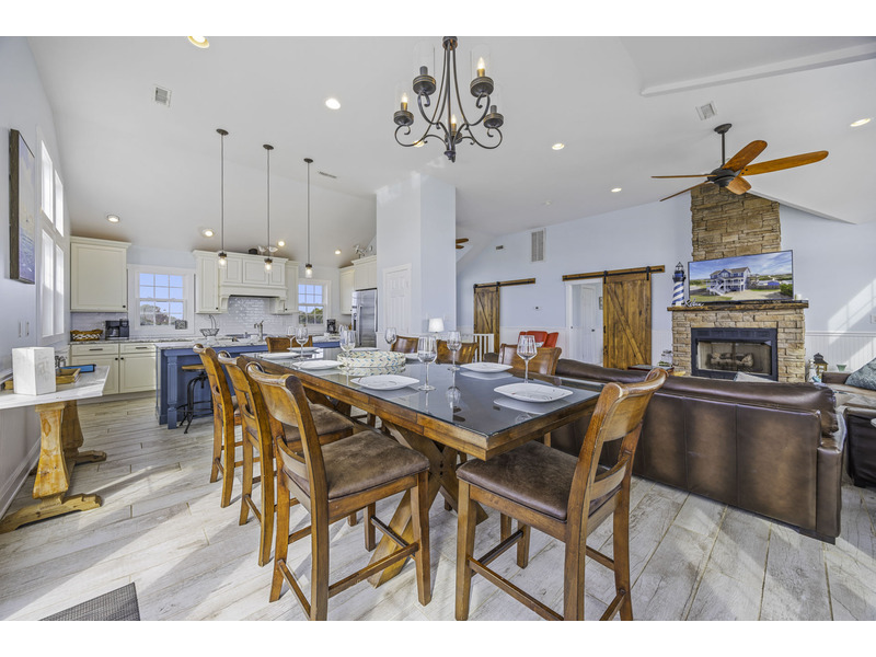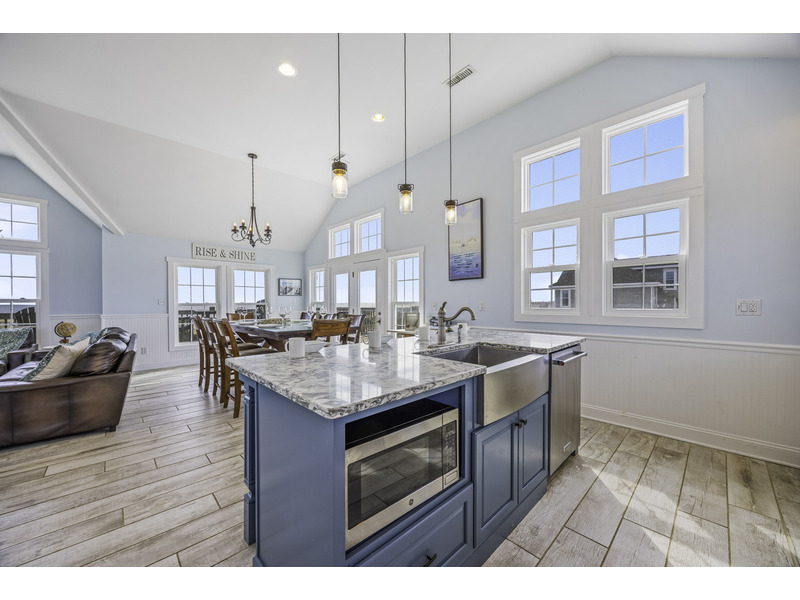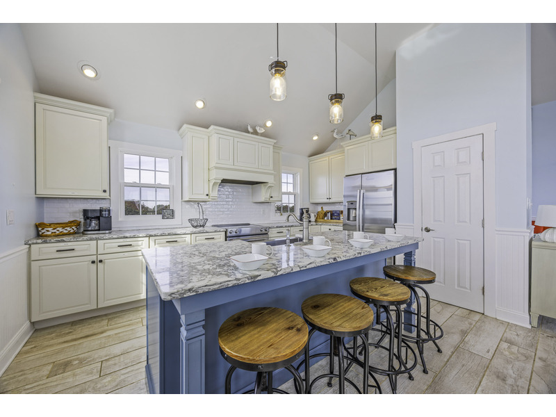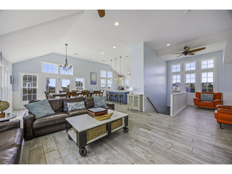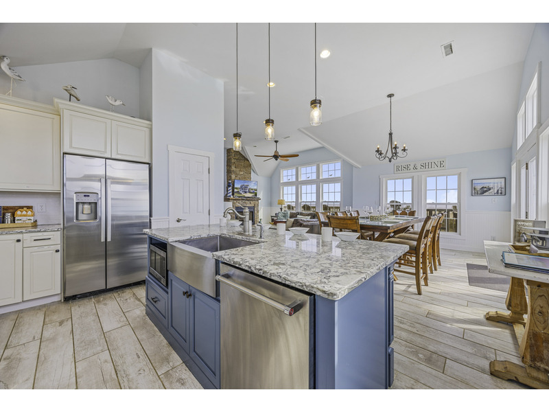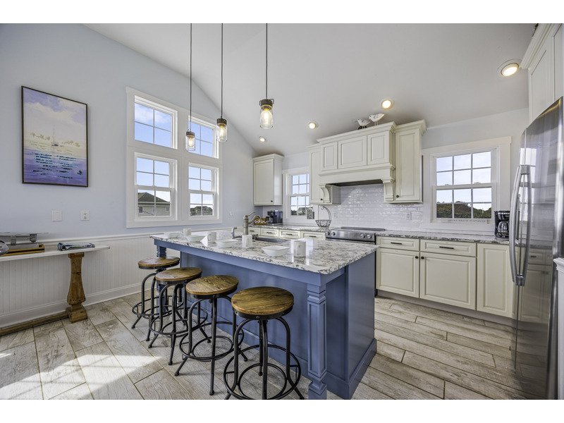 It is here where you should prepare to be captivated. This open living area is an invitation to unwind, centered around two giant leather couches perfect for kicking back and enjoying the Smart TV. Craft your family's best meals in the well-equipped kitchen, then gather for a feast at the eight-person dining table and the four-person breakfast bar, all while the ocean's melody provides a soothing soundtrack. Best of all, doors in the dining area open wide onto the top floor deck where you can enjoy the evening breeze with a glass of wine or truly live up to the home's name with your morning coffee.
