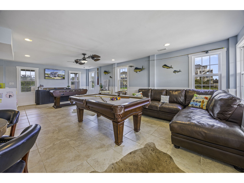 - Game room with pool table, foosball table, and arcade game console