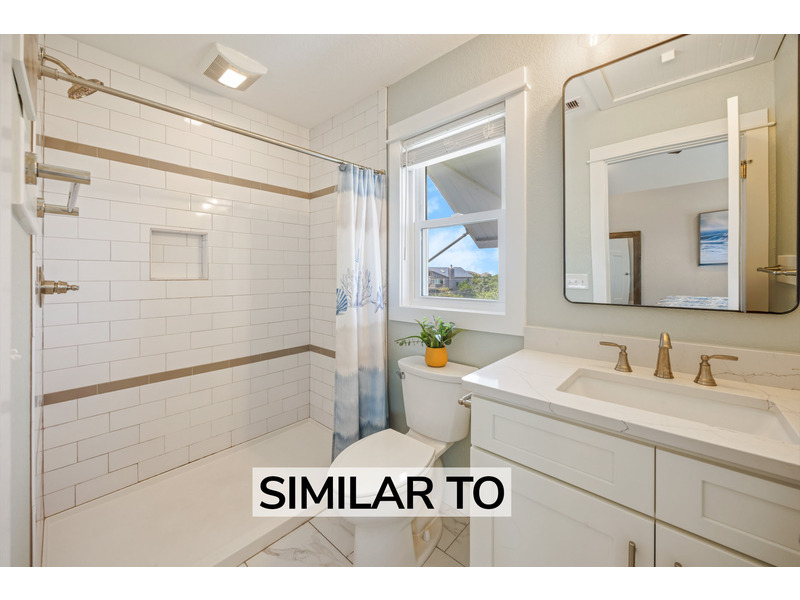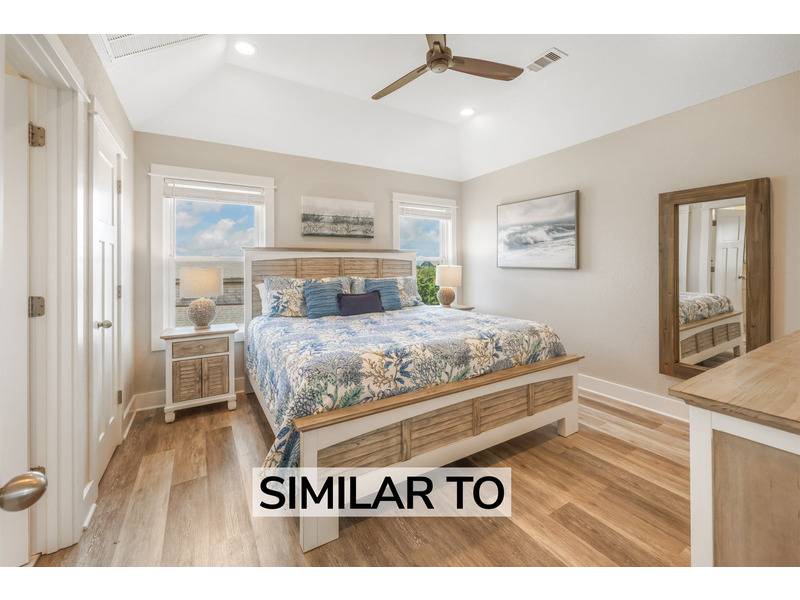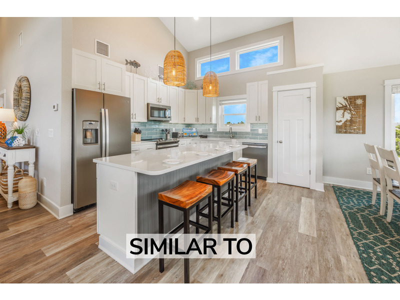 On the first level, an outdoor shower is a welcome convenience as you return from your daily adventures on the water or exploring the island. Nine-foot ceilings on each of the upper two levels of luxurious living create an airy, expansive environment that elevates every moment of your stay. On the first level, discover two of the home's king master bedrooms, each featuring Smart TVs, and one of which also includes a built-in bunkbed. In addition to the two ensuite bathrooms there is a half-bath, as well as a media room featuring a Smart TV. Kick back here while streaming your favorite shows or movies, or catch the night sky's special programming while enjoying a relaxing soak in the six-person hot tub located on the adjacent covered deck.