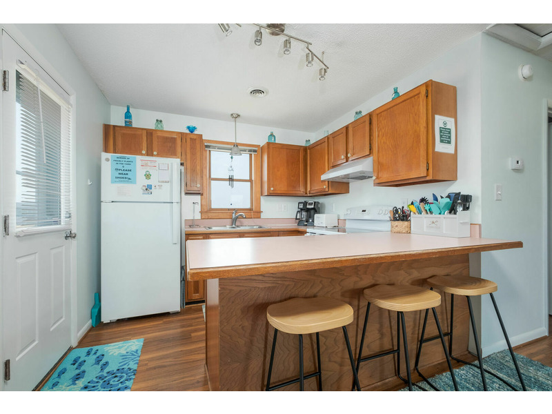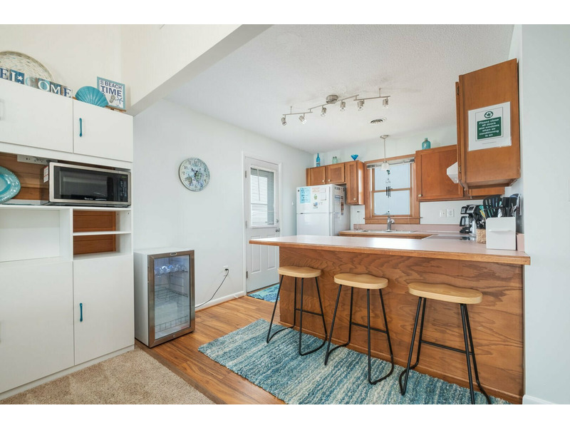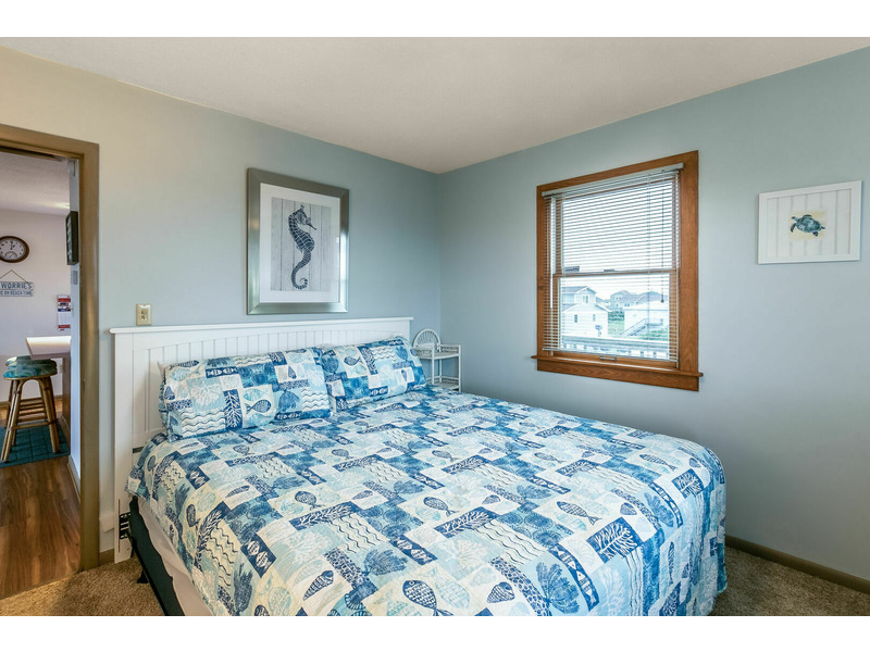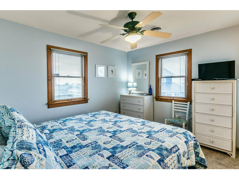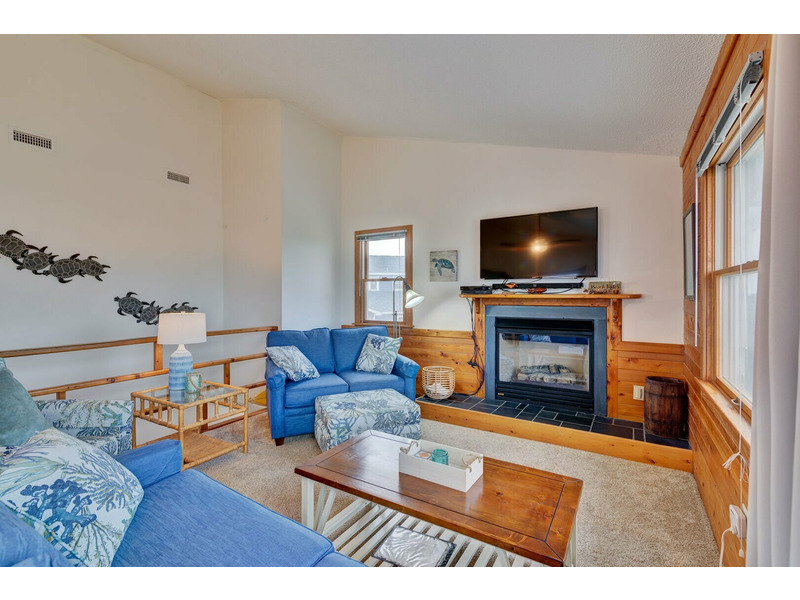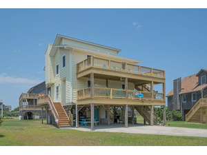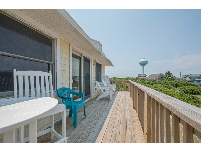 The fun doesn't end at the nearby amenities and easy beach access. Outside, kids in your group can play safely in the cul-de-sac while the adults take advantage of the corn hole set for some major fun. The under area of the home is not only for parking, but also doubles as a relaxing space in the shade; complete with a picnic table and bistro lights for nighttime entertaining. Inside Sea Quench, a chest full of games and puzzles awaits you to occupy time when you've had too much fun in the sun or when the occasional rainstorm passes by. The entry-level also offers a sitting area complete with couches and a flat-screen TV. Upstairs at Sea Quench, enjoy an open living area perfect for entertaining friends and family as well. When it's time to eat, the family chef can prepare dinner in the well-equipped kitchen or on the gas grill. There's dining space for everyone at the 8 person dining table and the breakfast bar with seating for 3. Plus, Sea Quench offers some seriously stunning views. At this Outer Banks rental, there are nearly 1,300 square feet of decking giving you wonderful ocean views! The furnished decks are bound to be your favorite place to enjoy your morning coffee with stunning sunrises as well as beautiful sunsets over the sound with an evening glass of wine. When it's time for bed, head to one of the 4 bedrooms for a restful night's sleep. Sea Quench truly has everything you're looking for and more for your next Nags Head vacation!