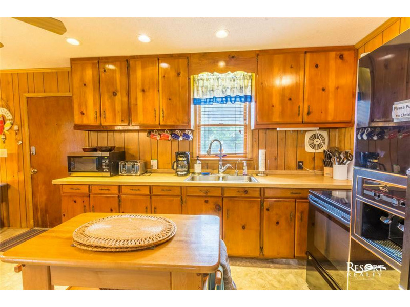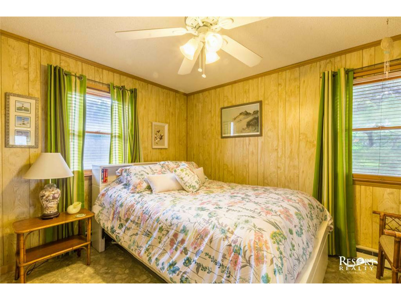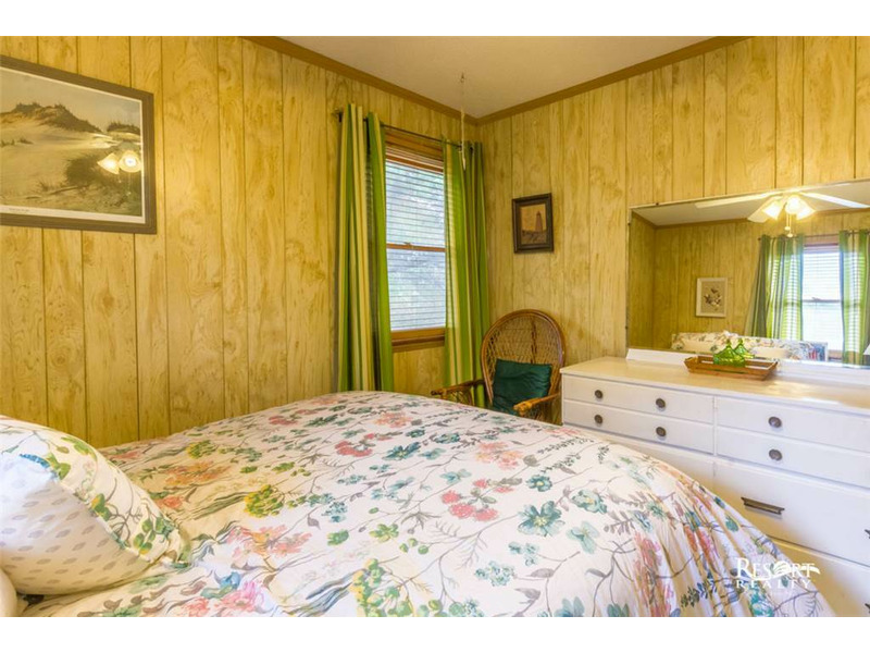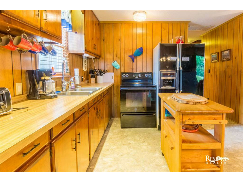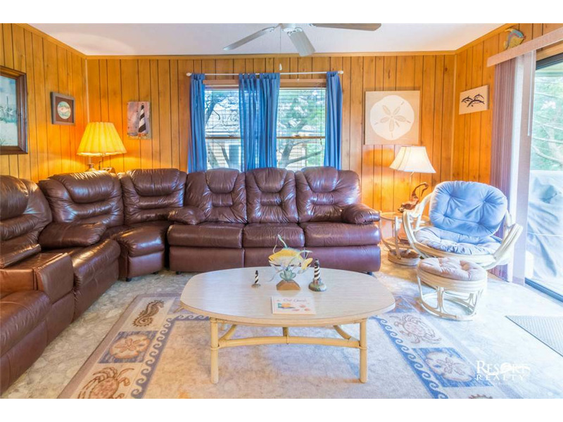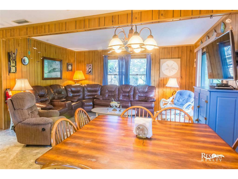 Entry, Dining Table, Kitchen, Living Area with Flat Screen TV, Access to Furnished Covered Porch, Full Hall Bath, Queen Bedroom, Queen Master Bedroom, Bedroom with Pyramid Bunk.