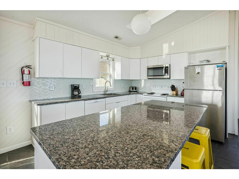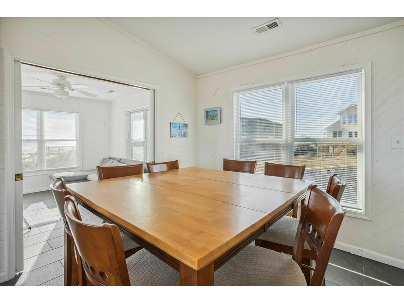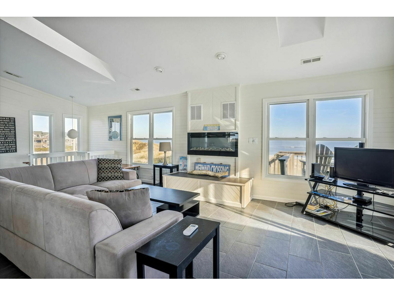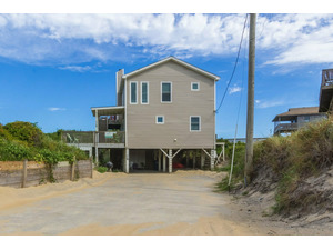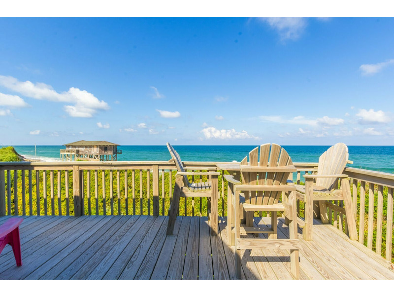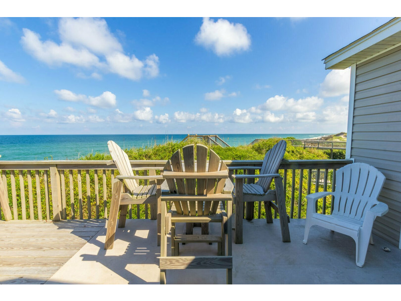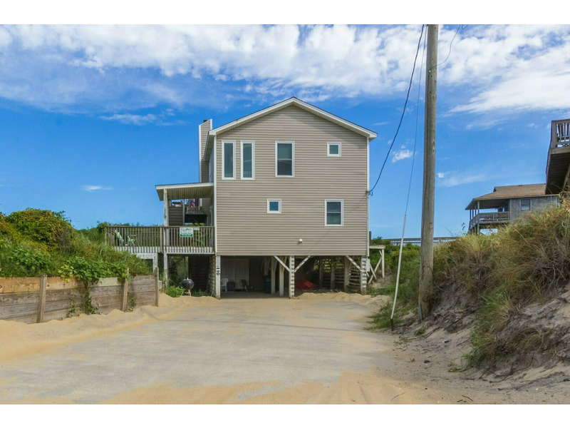 BEACH GEAR RENTAL INCLUDED! Always Included, complimentary linens and made beds!Designed with all the amenities to make your vacation memorable, this Oceanfront home was renovated to include new tile floors, new Jack and Jill bathroom, new vanities in all other bathrooms, all new windows, new roof, deck, and light fixtures. Come sit on the ocean-facing deck and drink in the sunshine and enjoy the wide ocean vistas. This home offers a den that closes with pocket doors to make a private fifth bedroom.110 E. McCall Court Nags Head, NC 27959 | MP 21.3