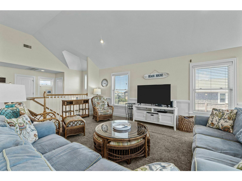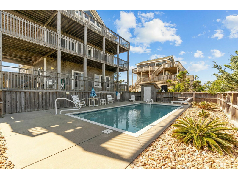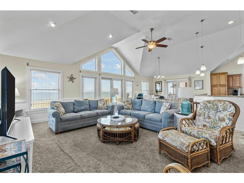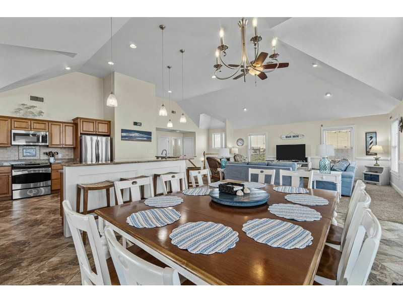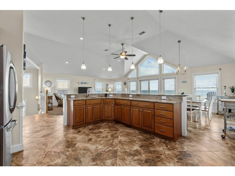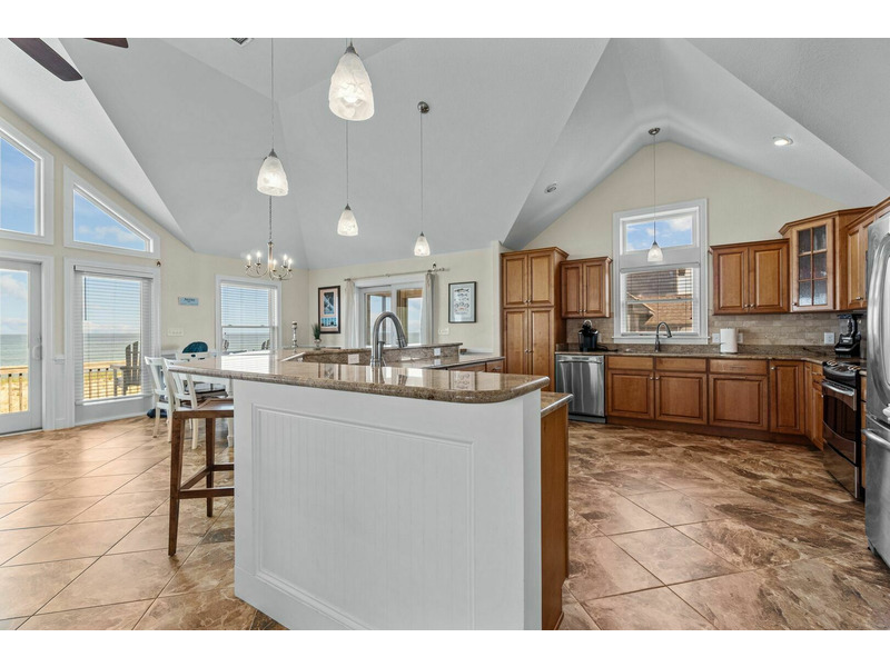 Lee's Landing also features elevator access; making it easy to haul groceries up to the kitchen or even just get loved ones from level to level with no hassle! The first floor game room features fun for the whole family including a pool table, wet bar, and flat screen TV. Upstairs, find an open living area complete with flat screen TV with ample seating and more. Enjoy your morning coffee on the sun deck that overlooks the ocean; giving you prime access to beautiful Outer Banks sunrises! The kitchen has stainless steel appliances and is perfectly equipped for everything you need to prepare meals during your stay. The breakfast bar is spacious and provides seating for 4 and the dining room features seating for 10. You can even choose to dine on the screened porch overlooking the ocean and taking in the tropical, Outer Banks air. Each bedroom has its own bathroom for your privacy and convenience. All of the spectacular amenities make Lee's Landing the perfect place to truly get away and get much needed relaxation!
