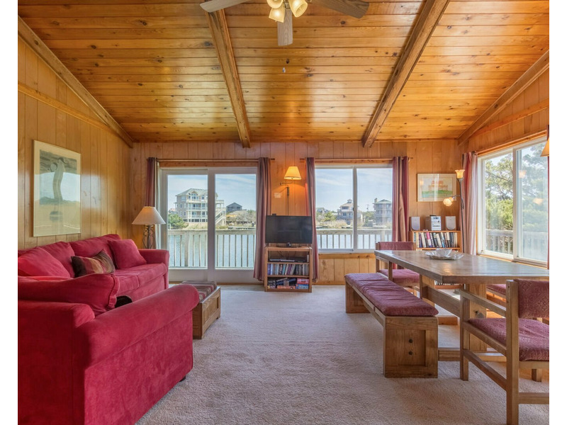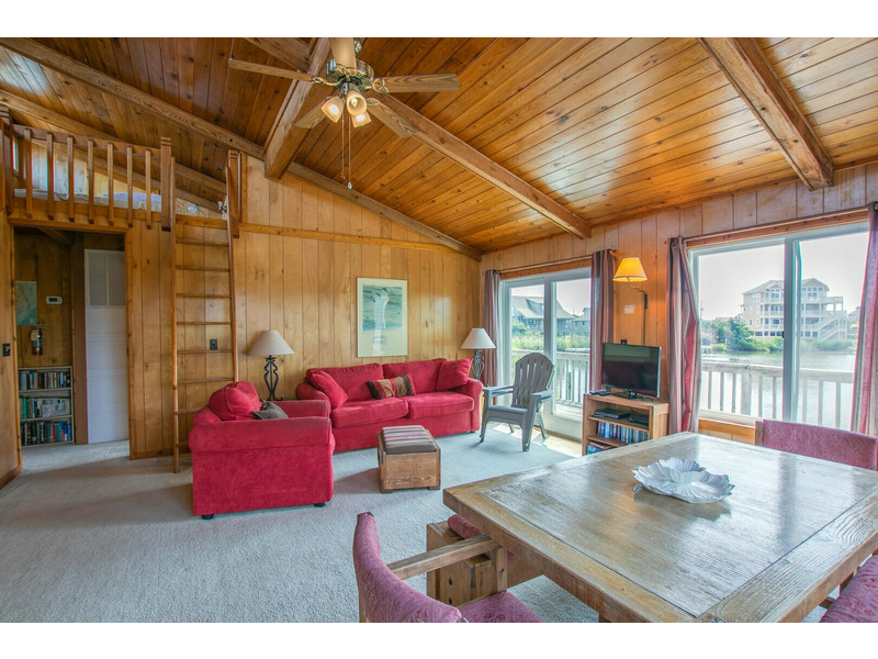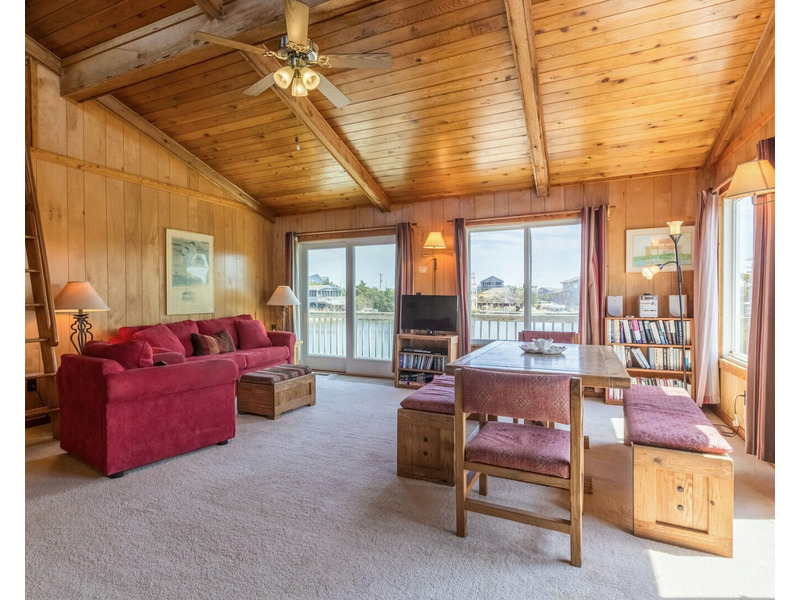 Inside Saucy Lido, enjoy an open living area complete with beautiful views of the canal. Watch your favorite TV show with your family or simply relax on the comfortable couches. The kitchen is fully equipped with everything you need to prepare meals during your stay and the dining area is the perfect place to sit down and enjoy family meals together. The Queen Master bedroom gives you beautiful views of the canal and the privacy and convenience you need. There's also 2 additional bedrooms with 2 twin beds each, a full hall bath, and a loft area. On the sun deck, enjoy sunbathing and relaxing in the sun. Guests staying in Saucy Lido also get complimentary access to the 25-meter Olympic size pool and tennis courts located at the nearby Kinnakeet Shores subdivision.