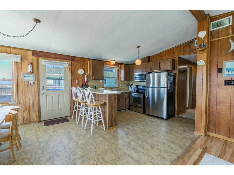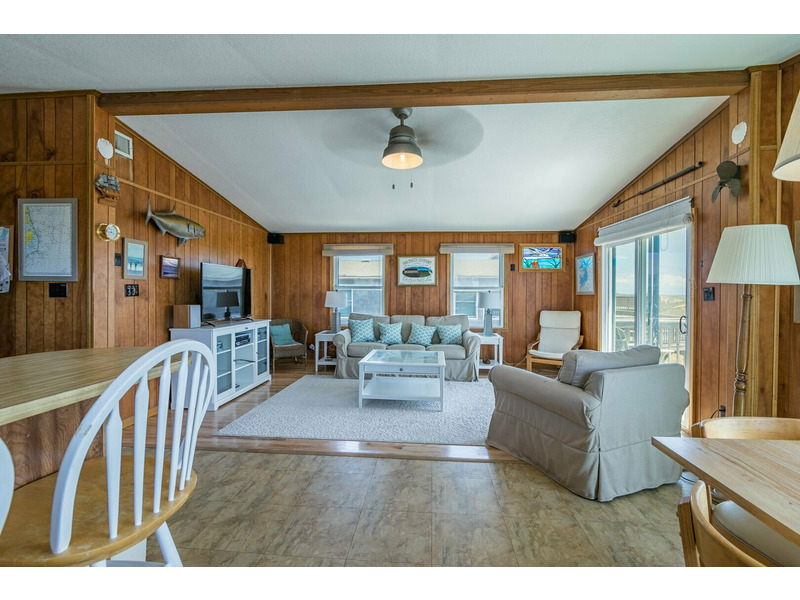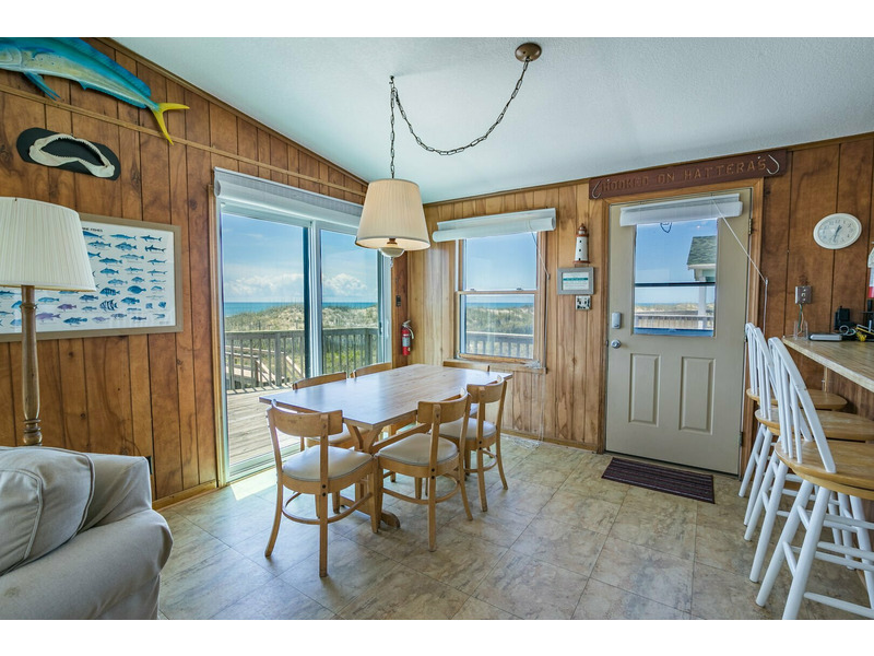 Central Heat/Air, Ceiling Fan, 2 TVs, DVD Player, WiFi Internet Access, Washer/Dryer, Dishwasher, Microwave, Stereo with CD Player, Large Sun Deck with Gate, Ocean Views, Hot/Cold Outdoor Shower, Lighted Fish Cleaning Table, Outside Guest Storage with Lock, Charcoal Grill.