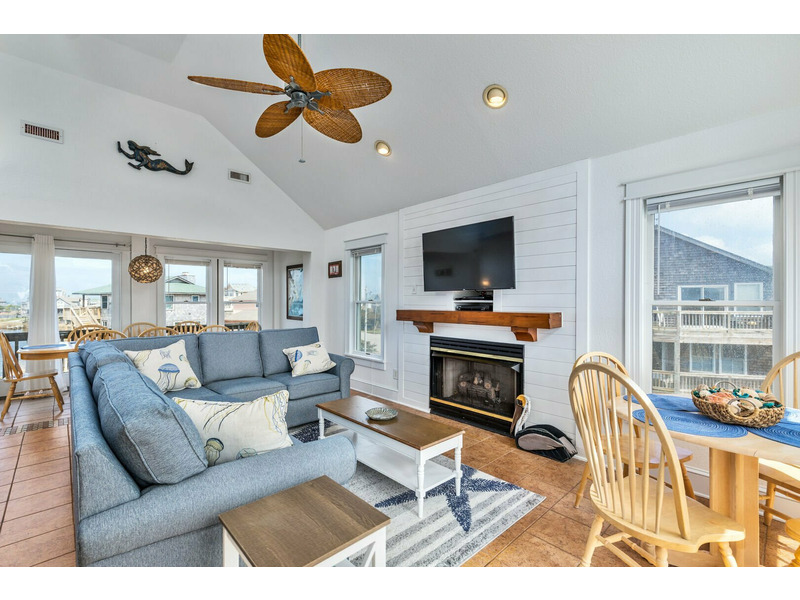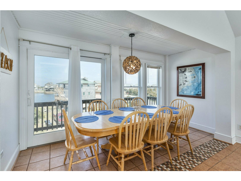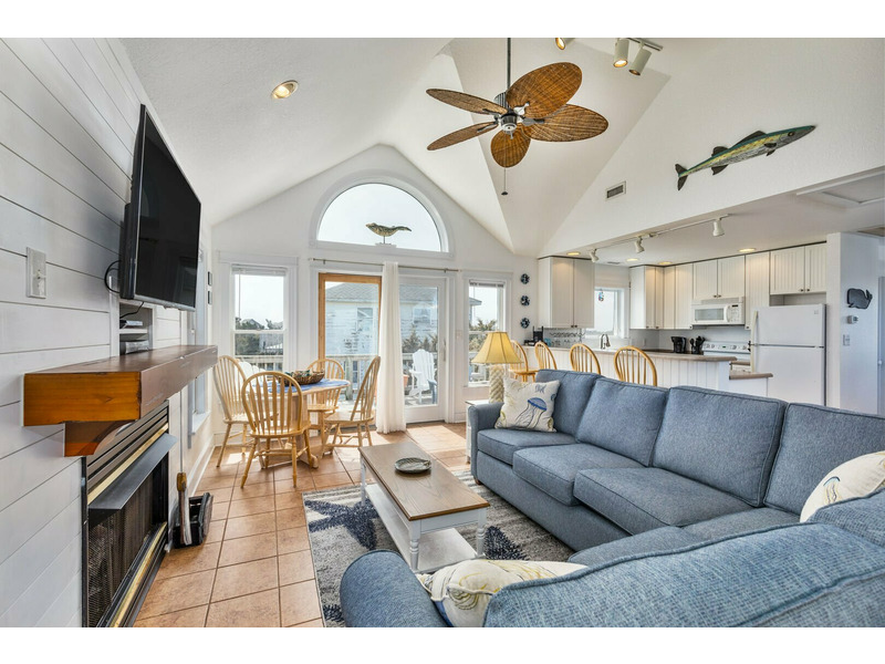 Family dinners will be a delight at the large dining table with a canal view while the large kitchen with breakfast bar will make cooking the dinners a breeze. Off season vacations are just as nice with the cozy gas fireplace located on the top floor and the bubbling hot tub on the covered deck. Guests staying at Sunset Cove also get complimentary access to the 25-meter Olympic size pool and tennis courts located on the North side of the Food Lion Shopping Center in the nearby Kinnakeet Shores subdivision.