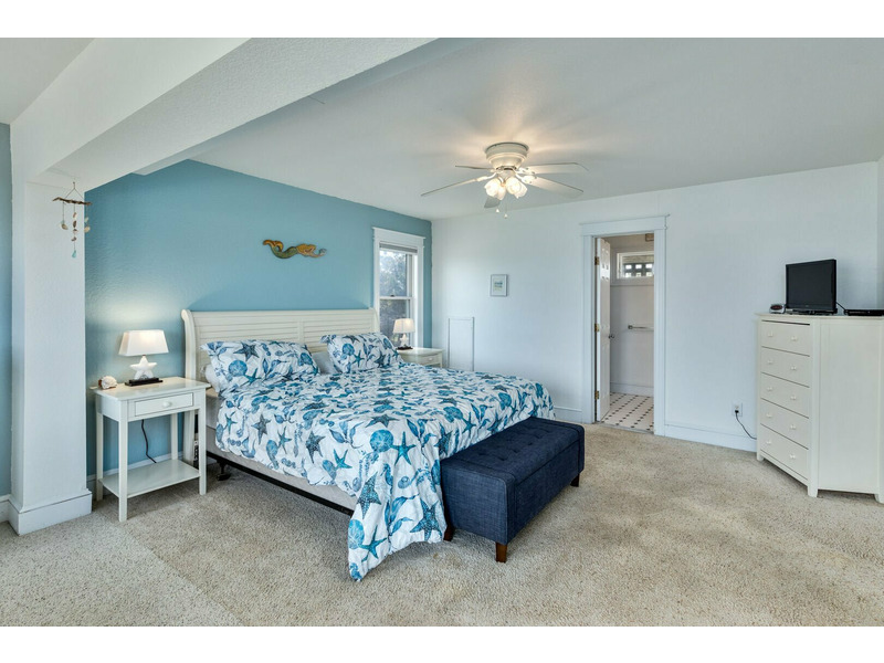 King Master Bedroom with TV and Small Sitting Area, 2 Queen Master Bedrooms with TVs, Hot Tub Located on the Canal Side of the House on a Covered Deck.