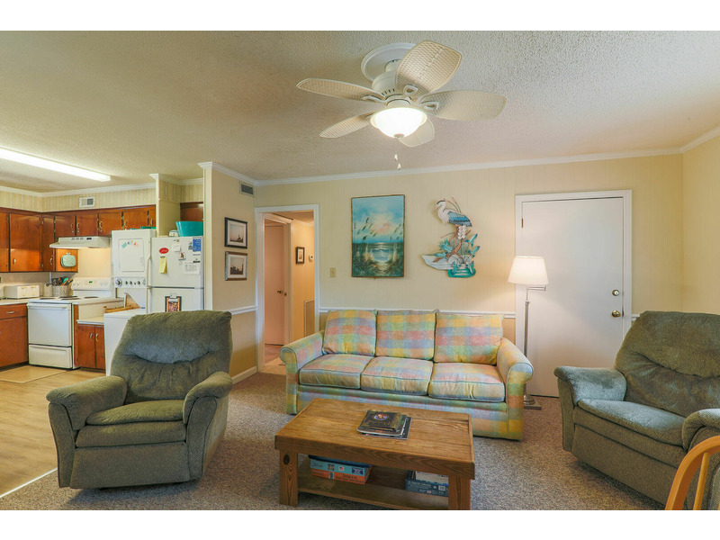 Entry, Screened Porch with Table for 4, Kitchen, Washer/Dryer, Dining Table for 6, Living Area with Flat Screen TV, Bedroom with 2 Twins and Private Half Bath, Queen Bedroom, Full Hall Bath, Bedroom with Double.